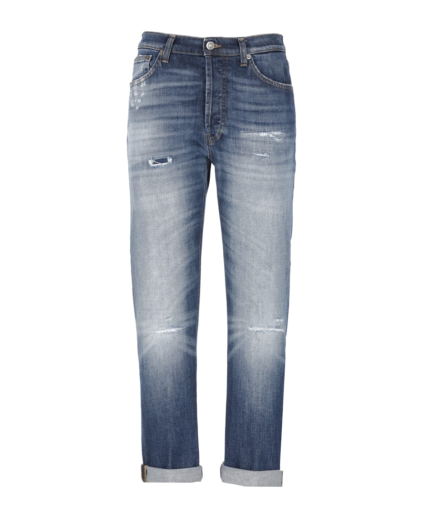 - Blue Dond Up denim jeans for woman - Belt loops - Front buttons fastening - Five pockets - Rear logoed tab - All-over destroyed details