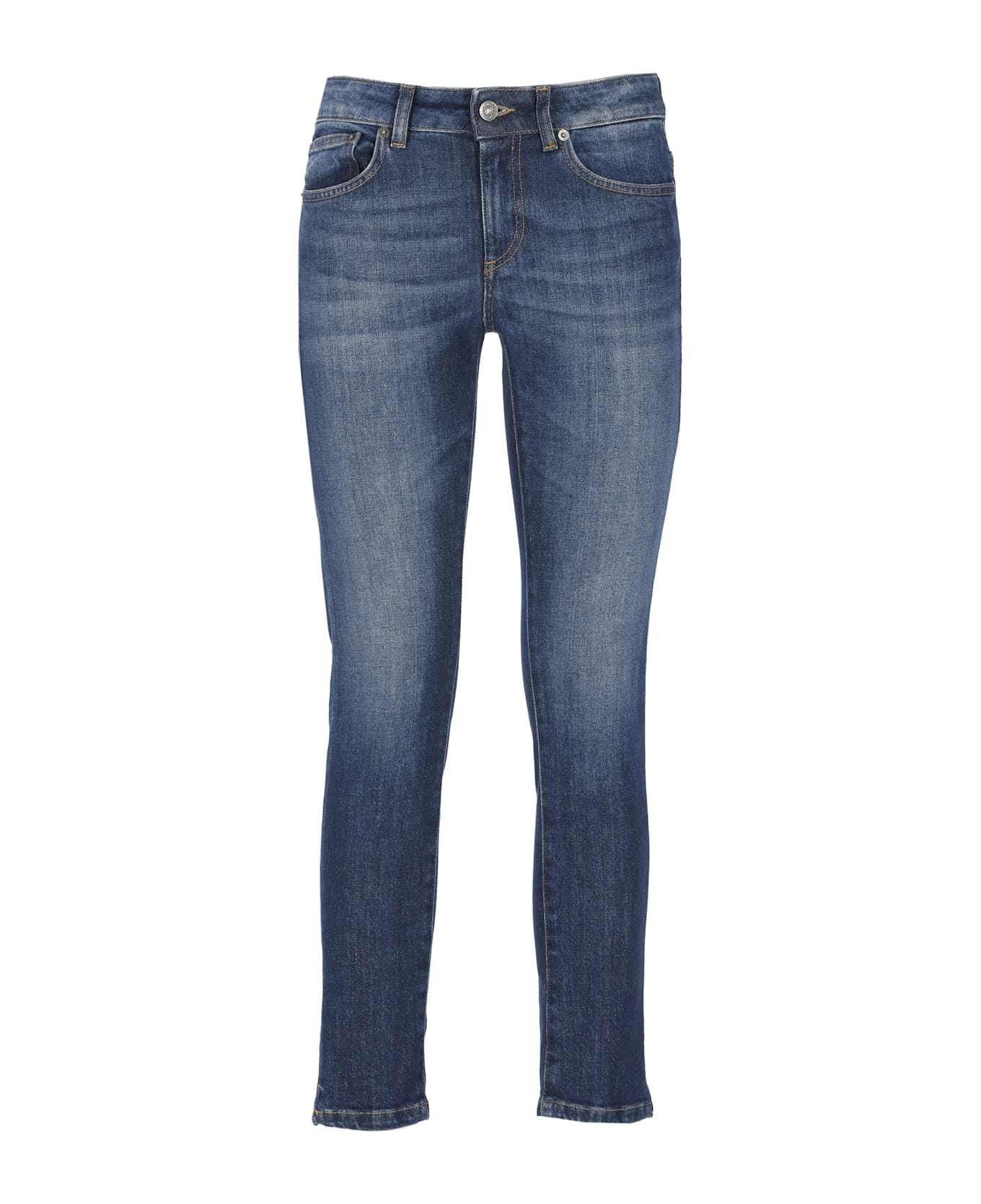 - Blue Dond Up cotton trousers for woman - Belt loops - Five pockets - Rear metal logo - Rear contrasting color logoed patch - Front zip and button fastening