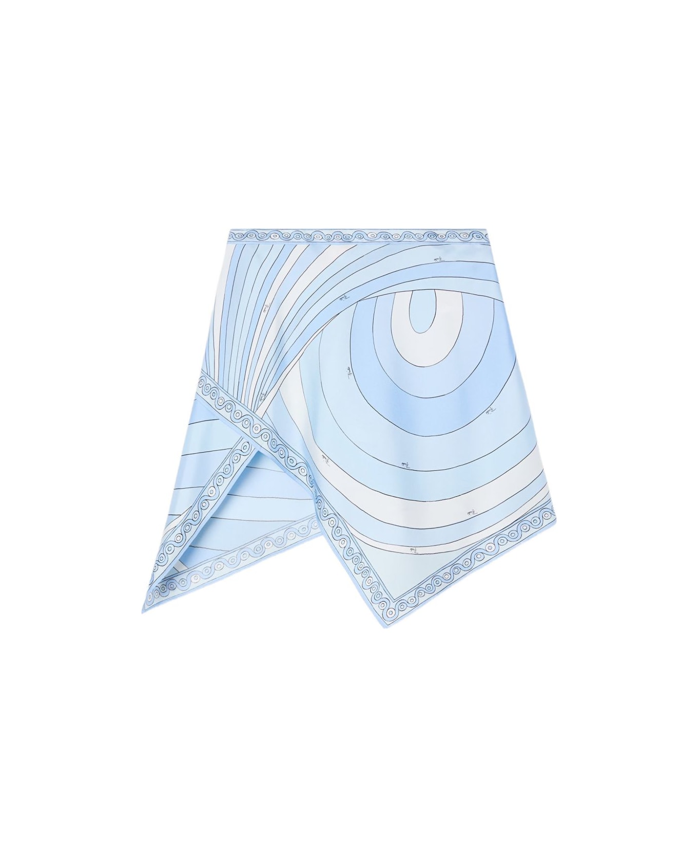 A flowing, refined skirt that recalls the iconic aesthetic of Pucci silks. Made from silk twill, it wraps lightly around the body, allowing the Iride print in pale blue to express itself with an elegant, continuous graphic rhythm. The side zip maintains a clean and functional line, enhancing a simple yet sophisticated silhouette. A garment designed to accompany movement naturally, where color and material interact in perfect balance. pale blue 100% silk scarf style side zip closure made in Italy The model is 178 cm tall and wears Italian size 38 To offer you a unique Pucci garment, we use an all-over print that makes the product unrepeatable. Therefore, the pattern print may vary from the one displayed in the photo.