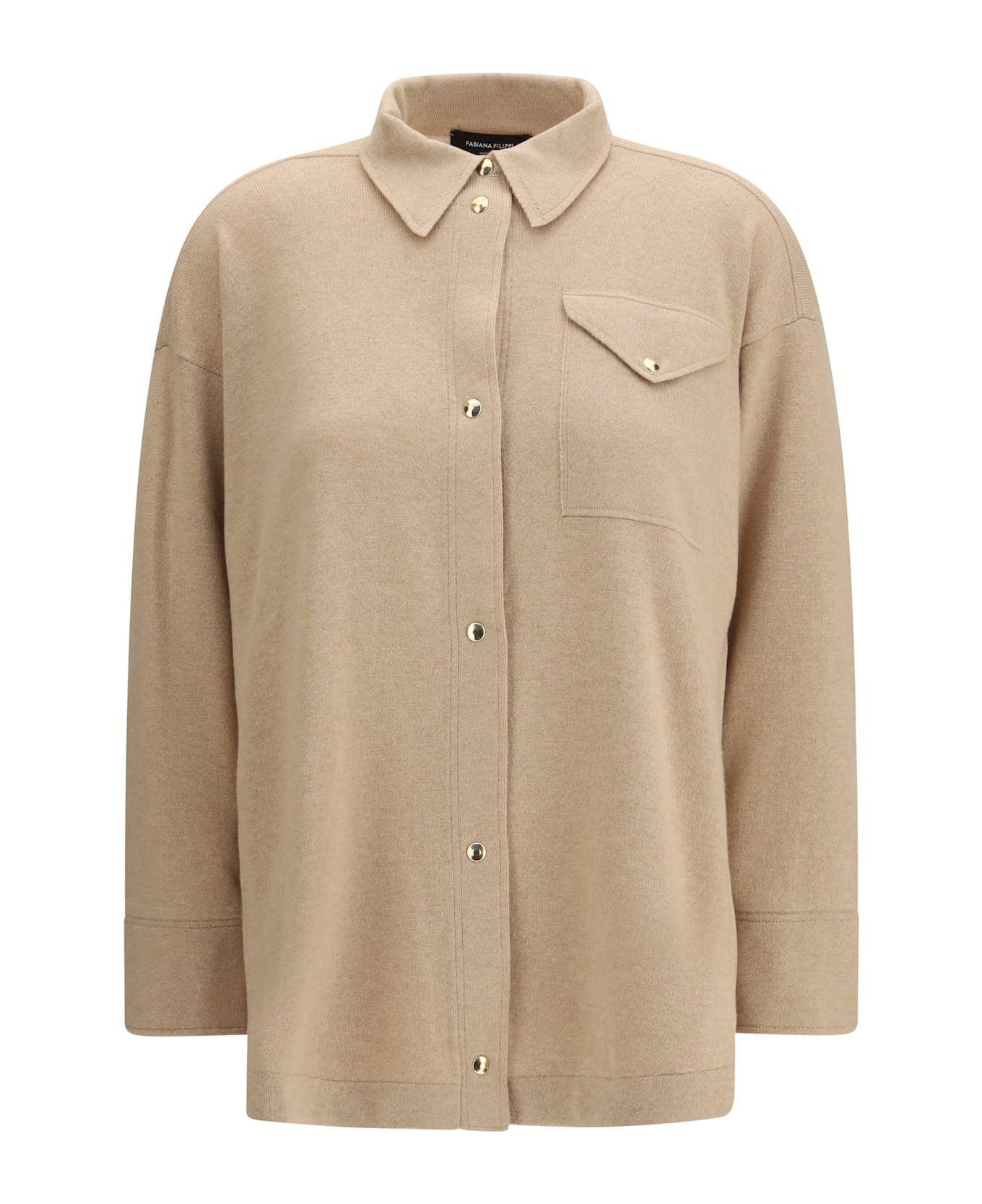 The knit shirt by fabiana filippi features a refined, minimalist design with a classic collar, front button closure, and a single patch pocket on the left side. crafted with long sleeves finished with double-button cuffs, it combines comfort and sophistication in a versatile piece that elevates both everyday and elegant looks with understated elegance.