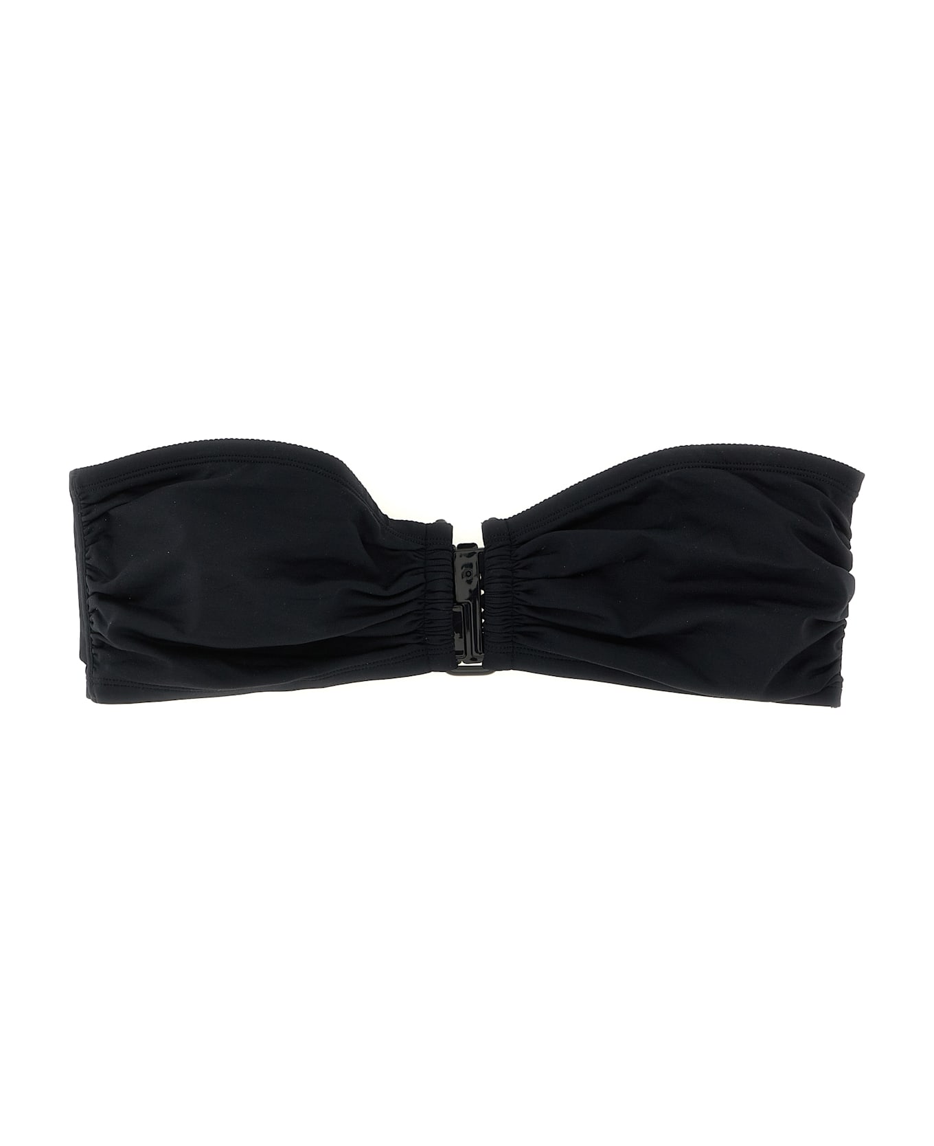 'Show' bikini top in Peau Douce* fabric with band style equipped with a U-shaped underwire that separates the pleated cups, side splints, and back hook closure.