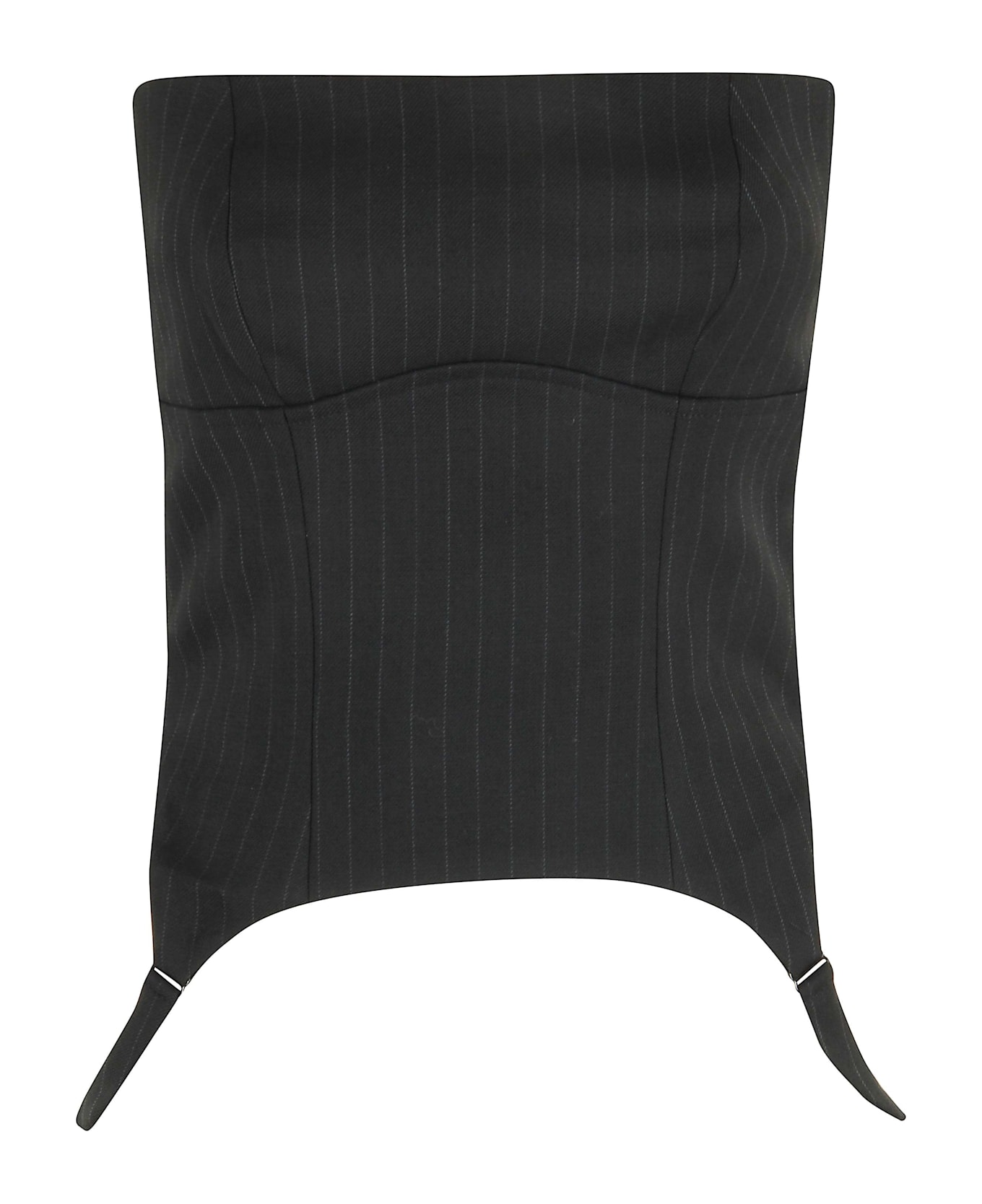 Corset top -MISBHV -Black color -Strapless -Squared neckline -Chinstriped -Zip back closure