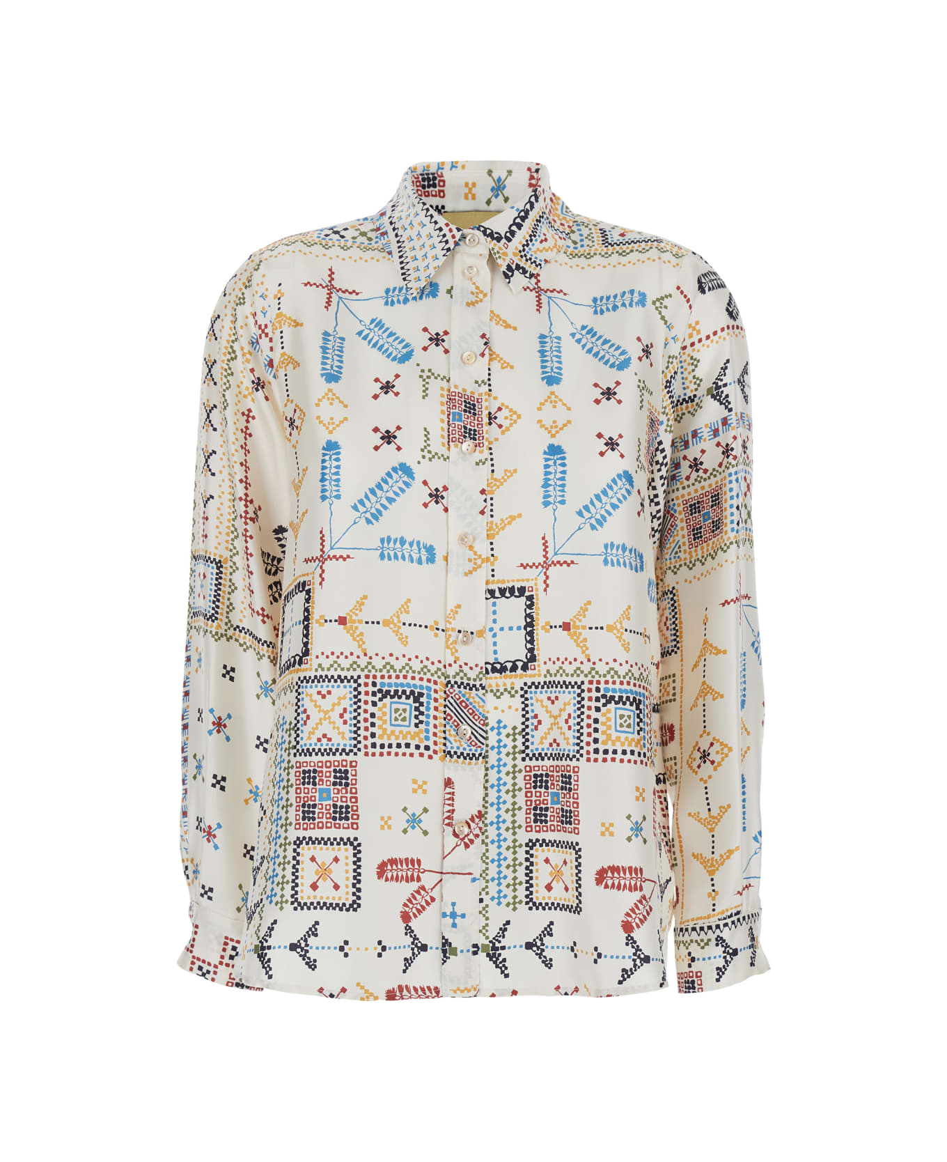 Multicolor Shirt With All-over Print And Pointed Collar In Silk Woman