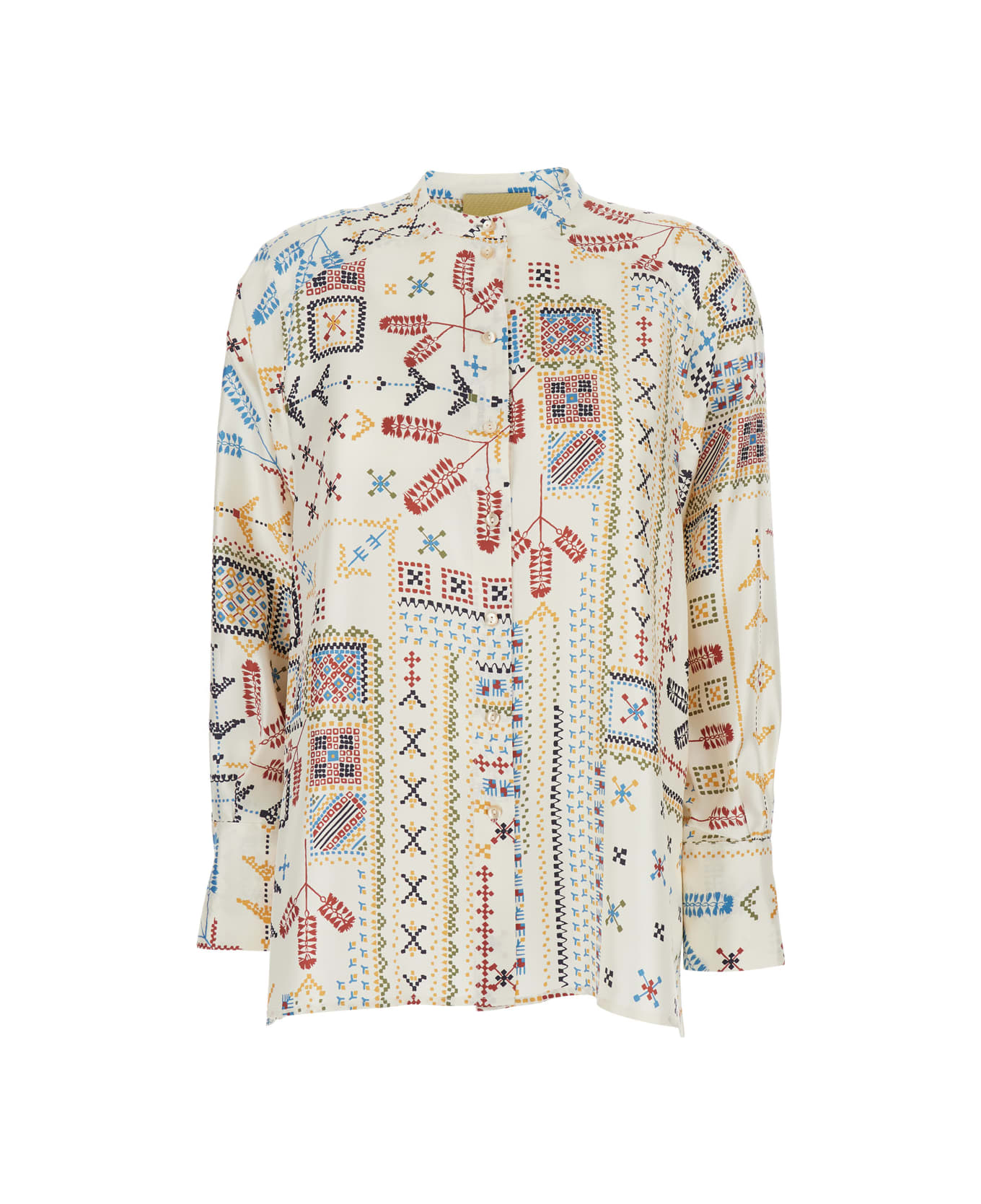 Multicolor Shirt With All-over Print And Stand-up Collar In Silk Woman