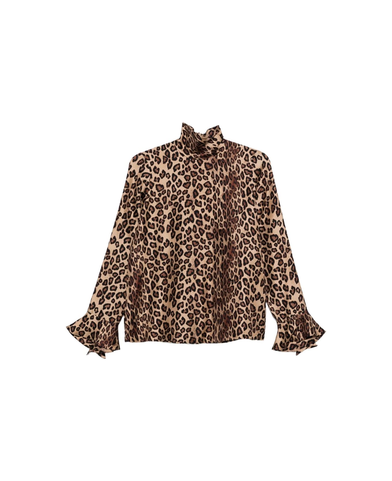 brown leopard print high neck long sleeves silk