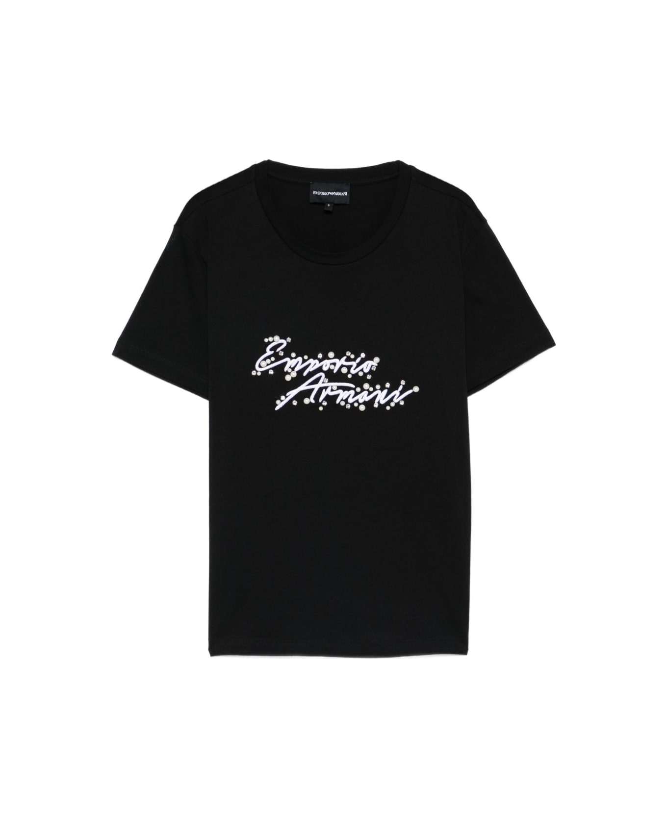black embellished lettering round neck short sleeves Composition: Natural (veg)->cotton100. , 0%