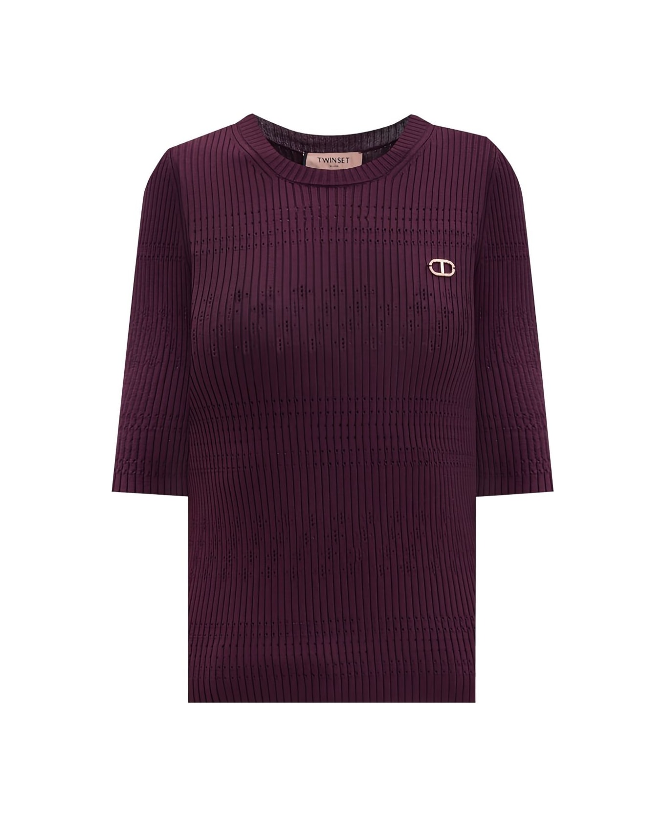 Twinset Red ribbed knit T-shirt, short sleeves, round neck, logo detail, delicate motif Composition: Tes:, 72% Viscose, 28% Polyester