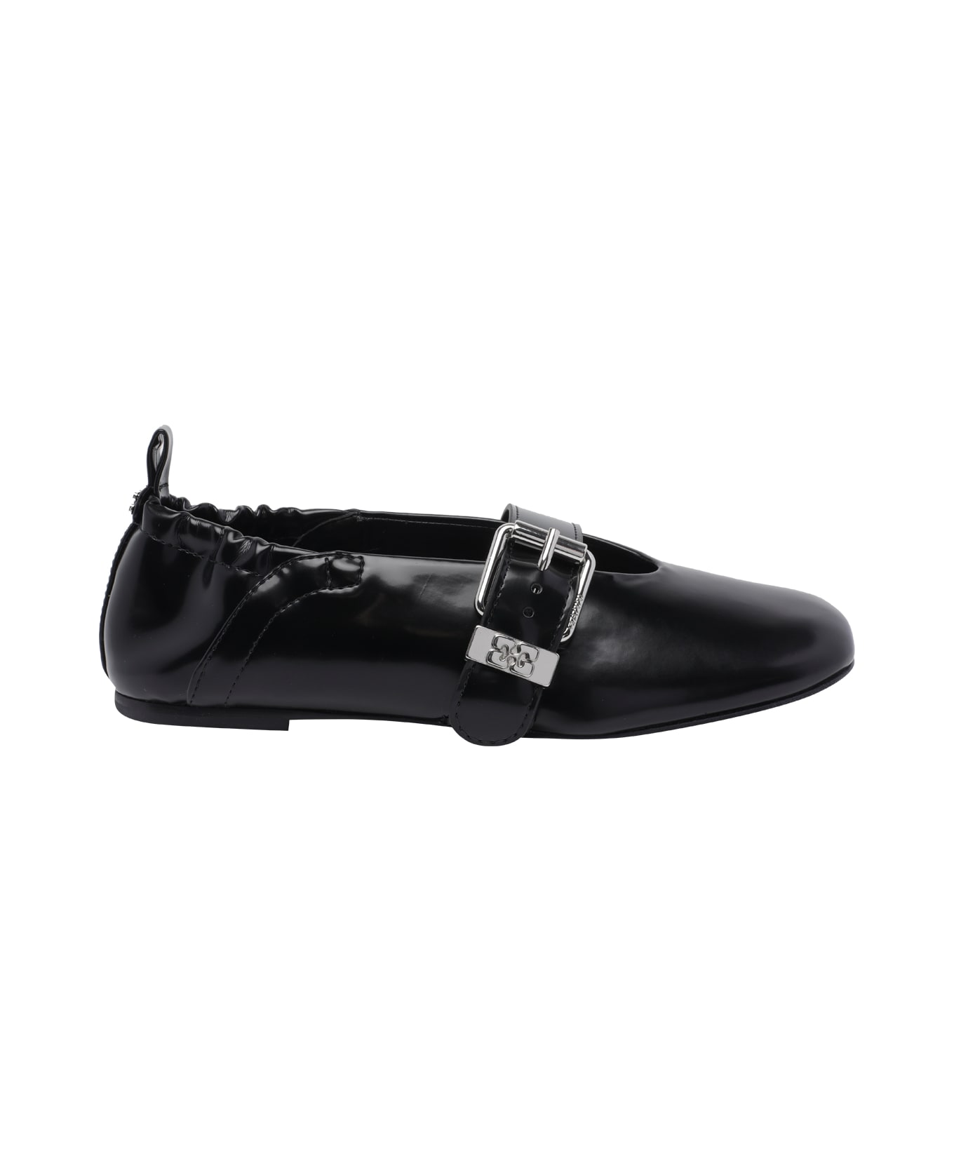 Ganni black Sue ballets, round toe, lateral buckle, leather upper Composition: 100% Synthetic/rubber Sole