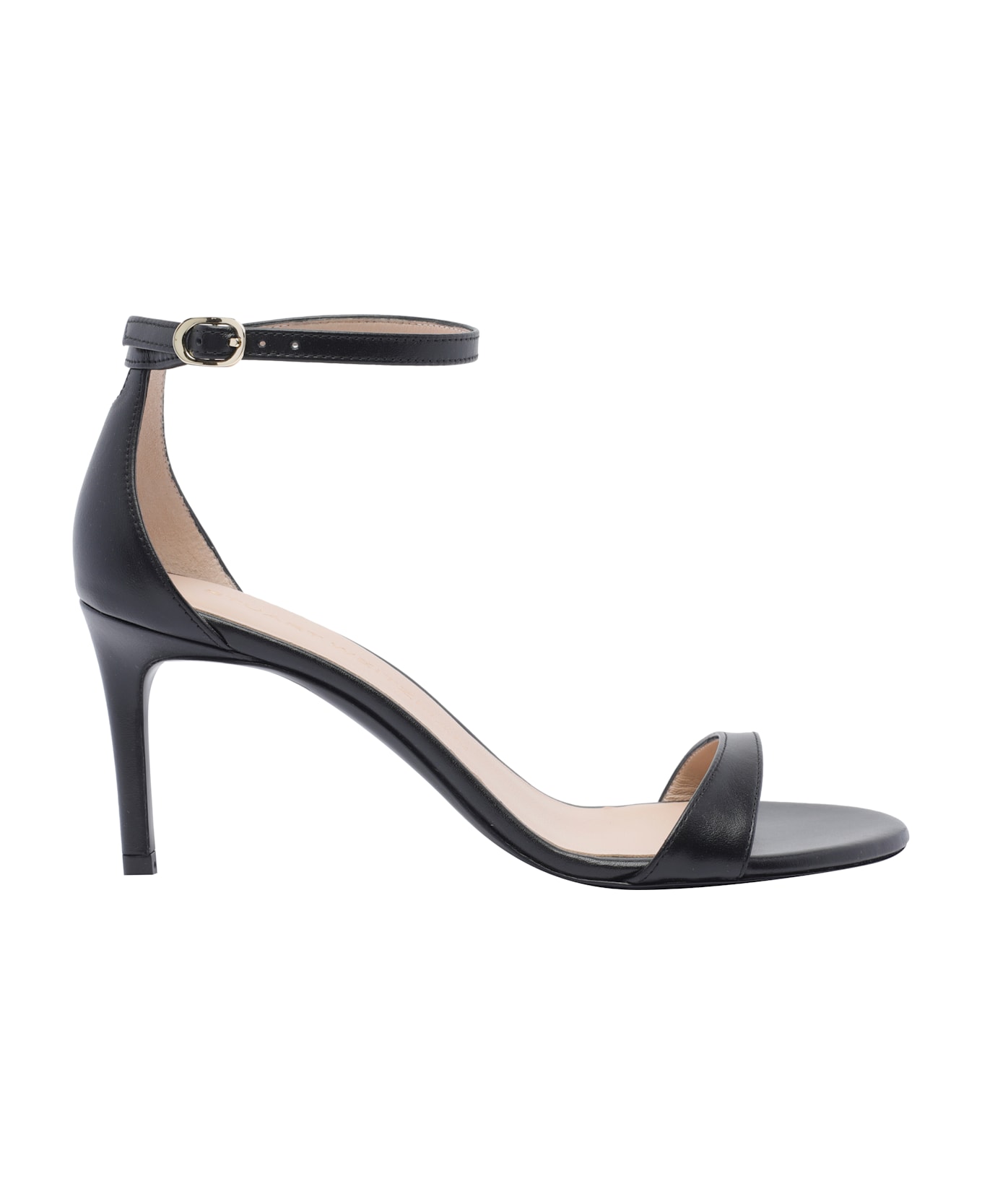 Stuart Weitzman black Nudist pump sandals, round toe, lateral buckle closure, leather upper