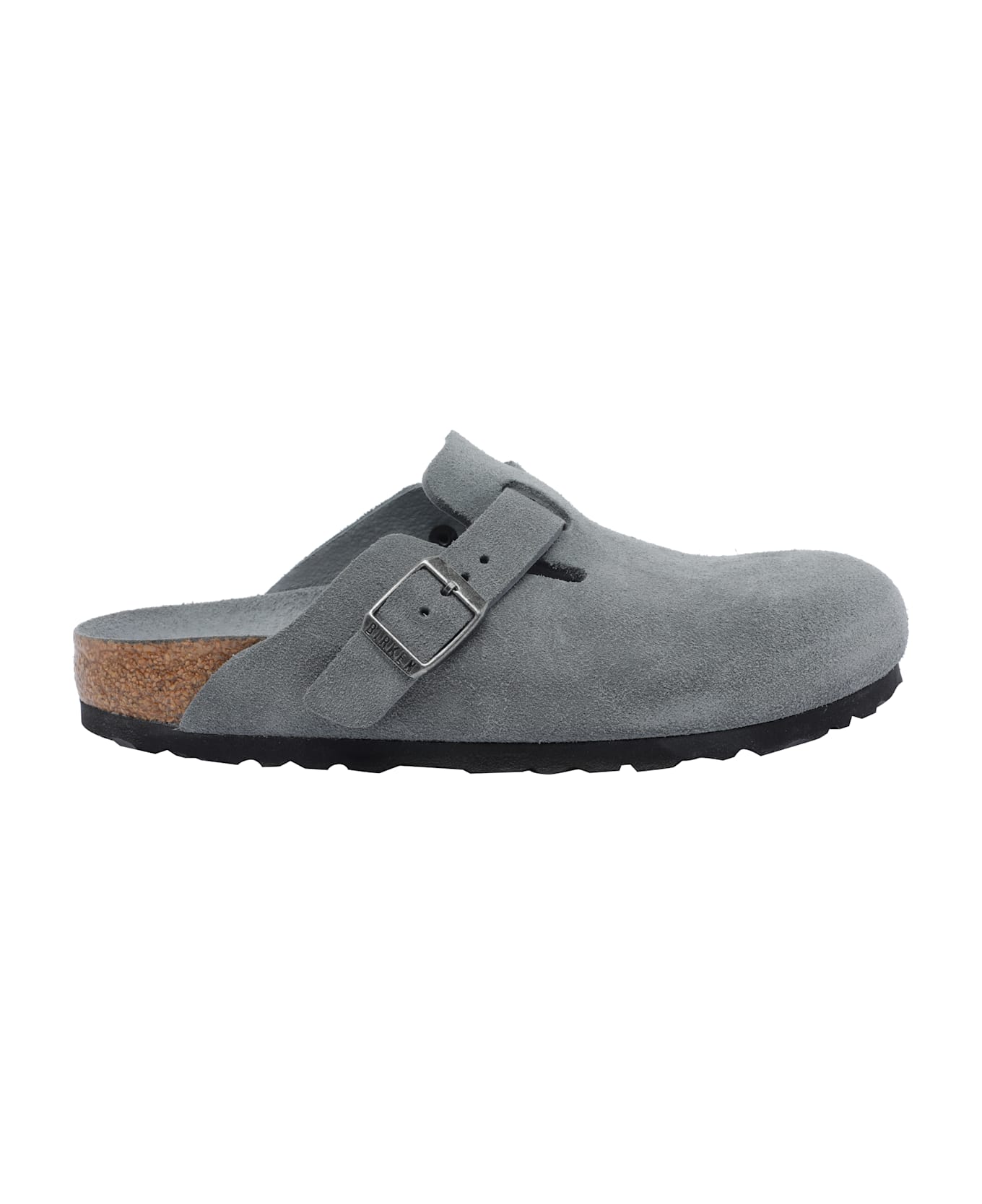 Birkenstock grey tonal Boston mules, round toe, lateral buckle closure, suede upper Composition: 100% Suede Leather/rubber Sole