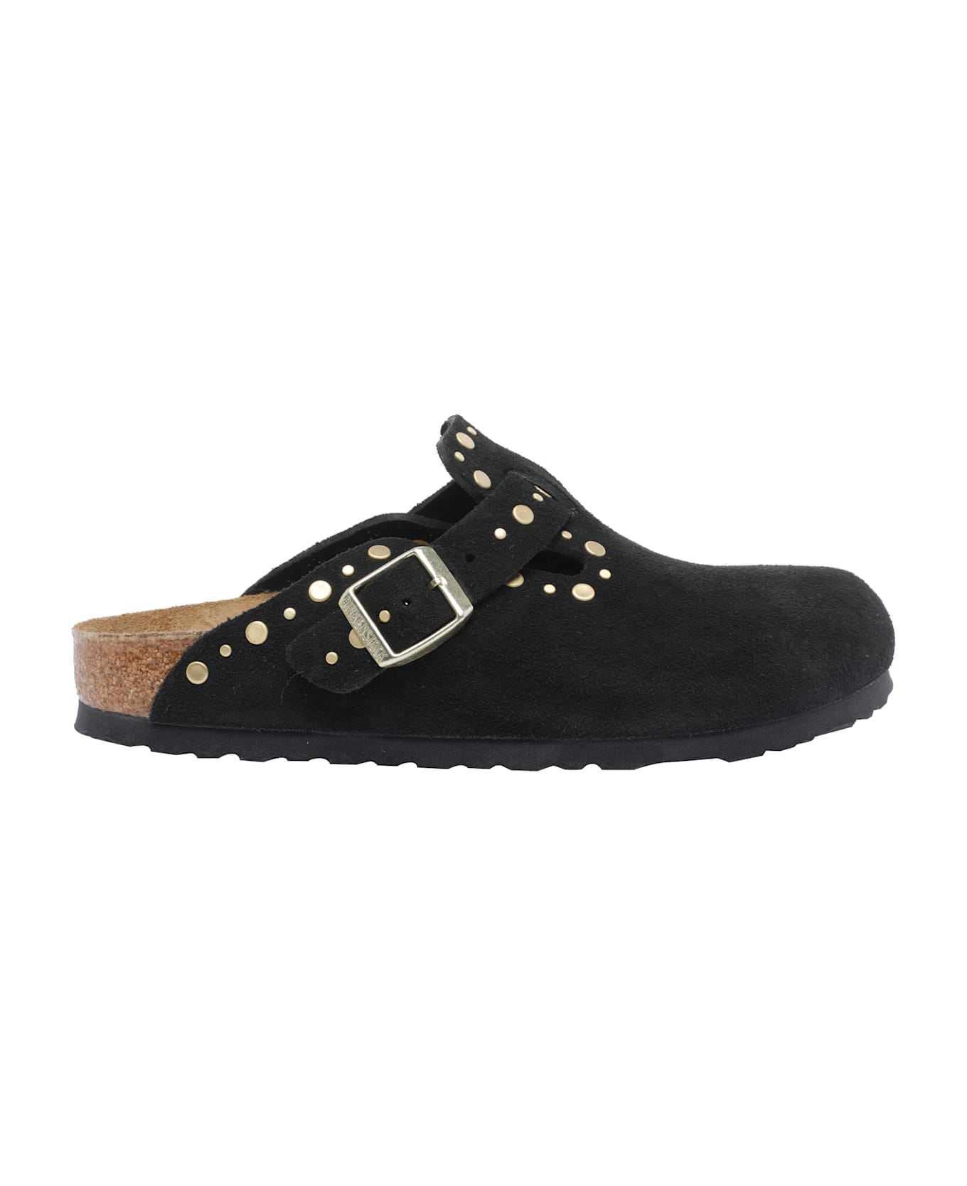 Birkenstock black Boston Rivet mules, round toe, suede upper, studs detail