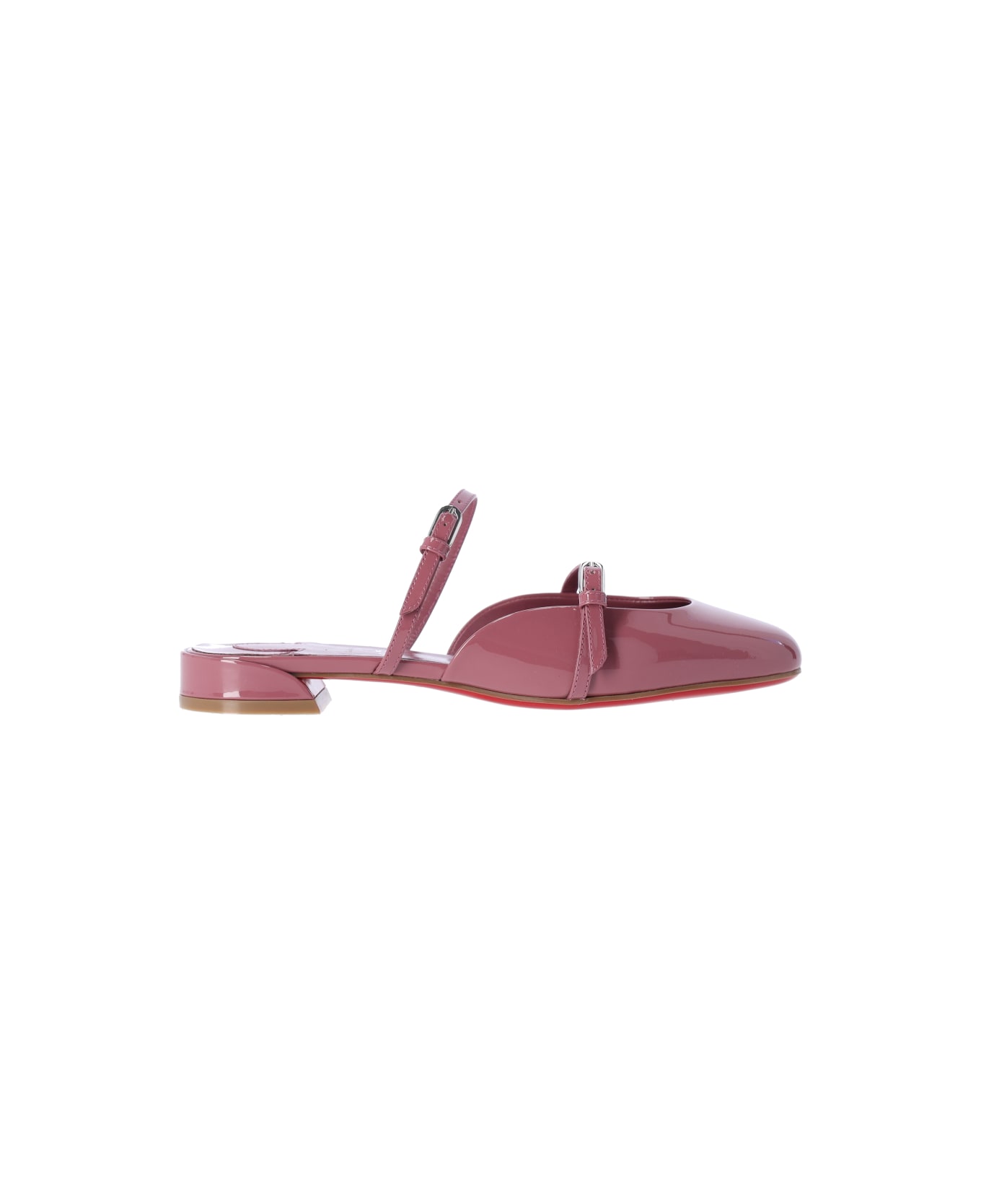 Mules "Jane Nina" Christian Louboutin in pink leather, round toe, adjustable buckle straps at the front, square heel, rubber sole. Composition: 100% Calf Leather