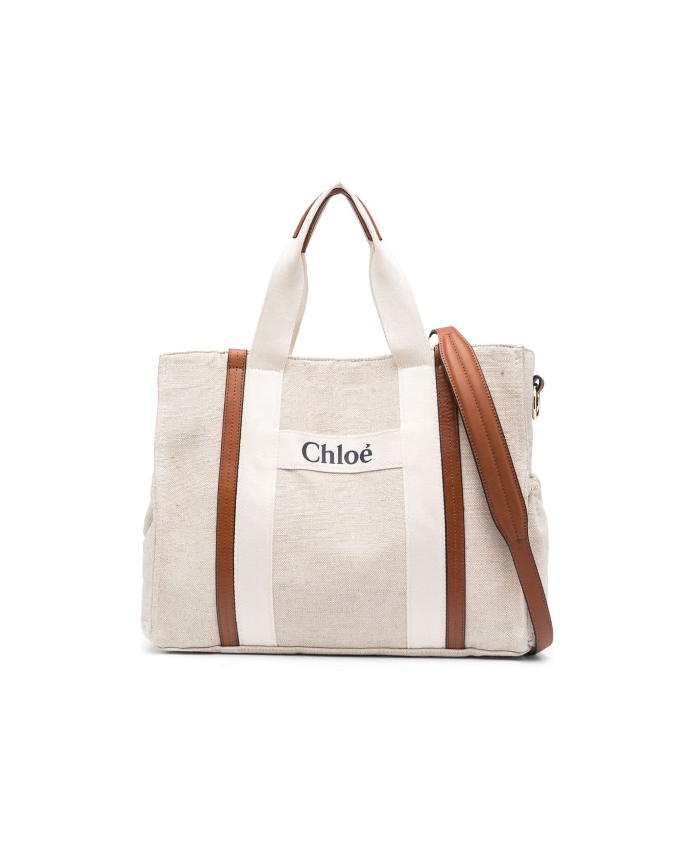 Beige chiaro con tracolla in pelle marrone. rifiniture in pelle, parte superiore aperta, design squadrato, chiusura magnetica nascosta, due manici, tasca interna con zip, tasca interna a soffietto elasticizzata, pouch rimovibile e scomparto unico. Fodera: Cotone 100%