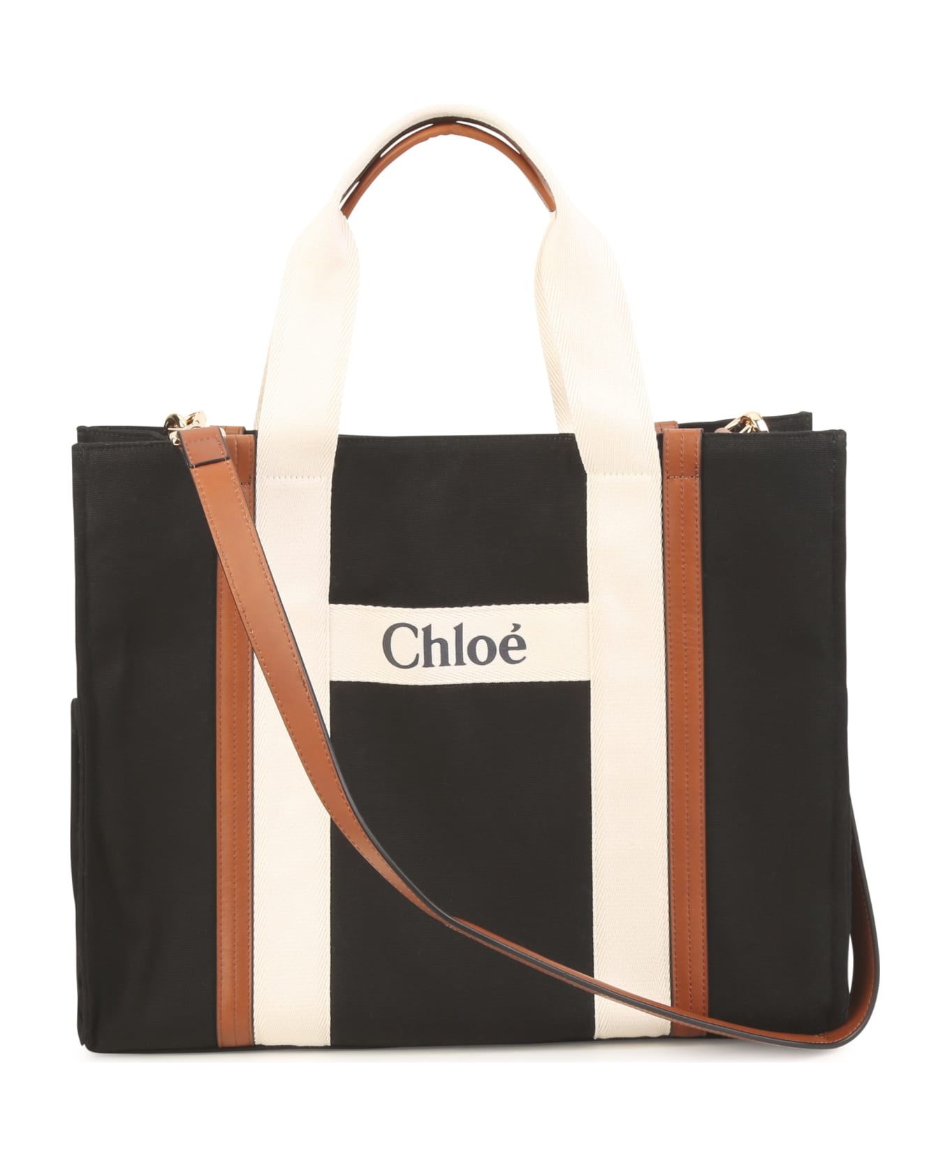 nera con tracolla in pelle marrone. rifiniture in pelle, parte superiore aperta, design squadrato, chiusura magnetica nascosta, due manici, tasca interna con zip, tasca interna a soffietto elasticizzata, pouch rimovibile e scomparto unico. Fodera: Cotone 100%