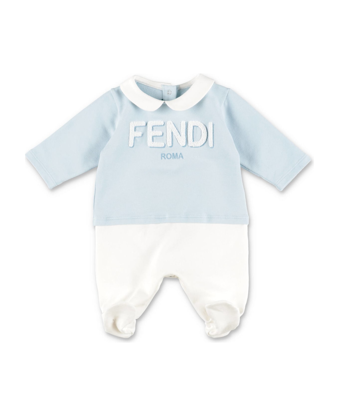 Fendi Set Celeste Con Pannelli A Contrasto In Jersey Di Cotone Con Cappello Bavetta E Tutina Baby Boy from Fendi Composition: 93% Cotton, 7% Elastan