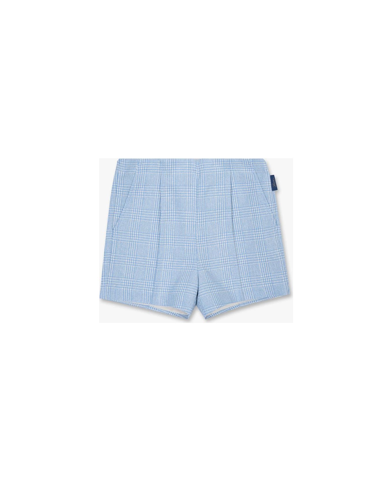 Light blue and white shorts from Gucci Kids. Embellished with a check pattern, this pair features an elasticated waistband, two slip pockets and pleats at the waist. Composition: Outer Layer: 52% Cotton 15% Wool 13% Polyester 11% Acrylic