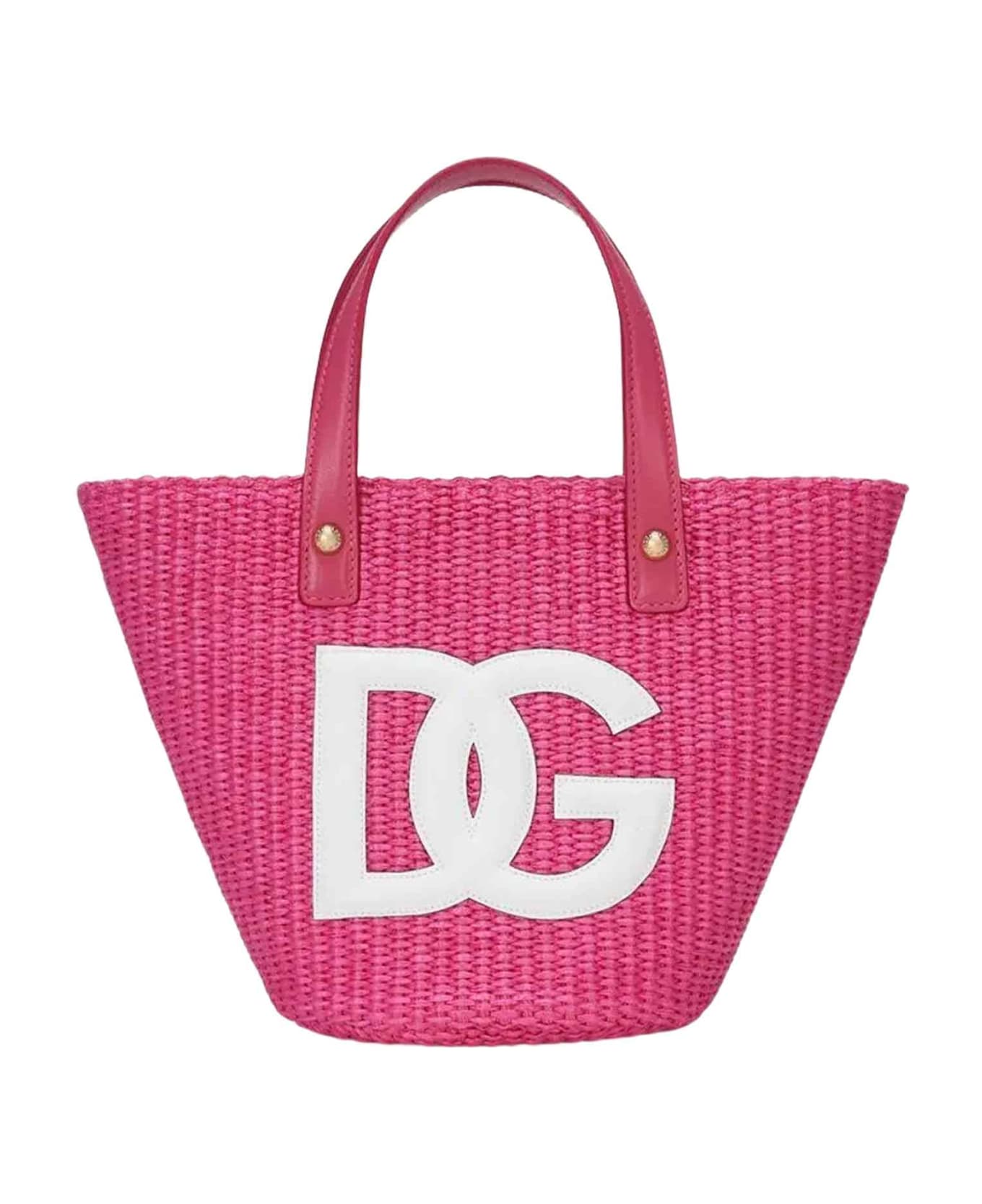 Fuchsia bag girl. Woven wicker design, front logo application, two flat handles and hidden magnetic closure. Calfskin 37%, Cotton 33%, Nylon 30%