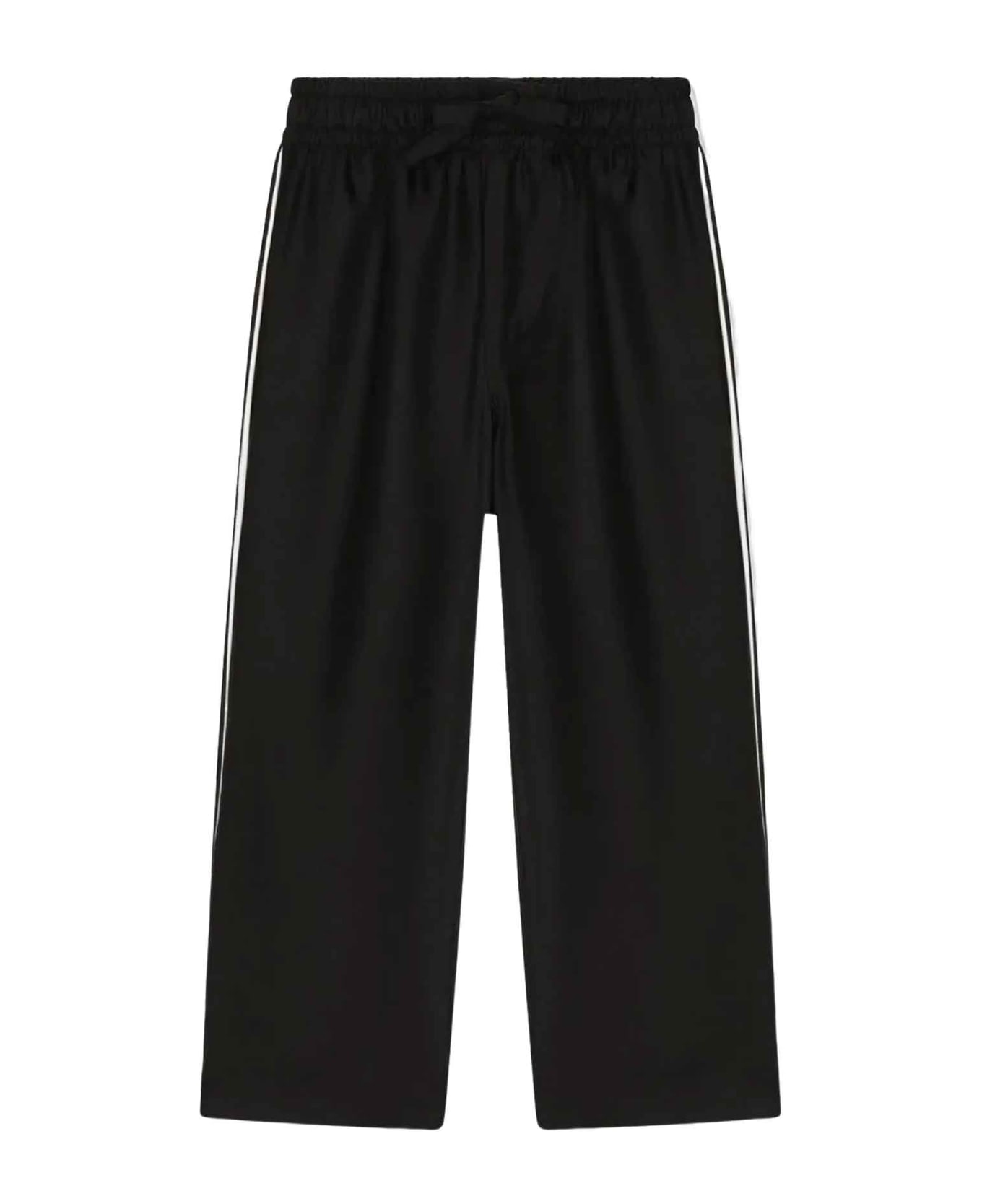 Black trousers boy. Waist with elasticated drawstring and side striped detail. 100% silk