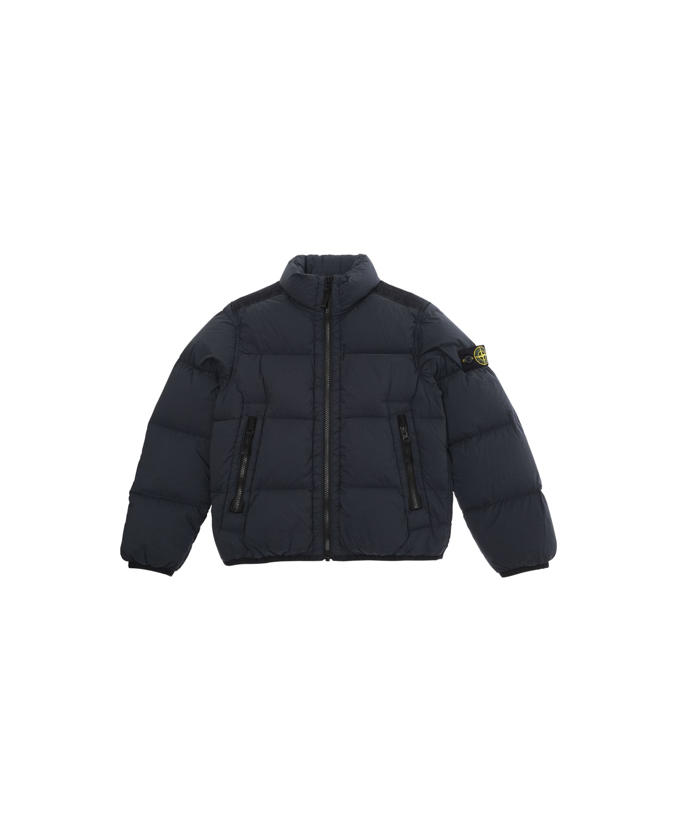 Down jacket Long sleeves Logo patch on left sleeve Front zip closure Two front zip pockets Blue Polyamide Regular fit
