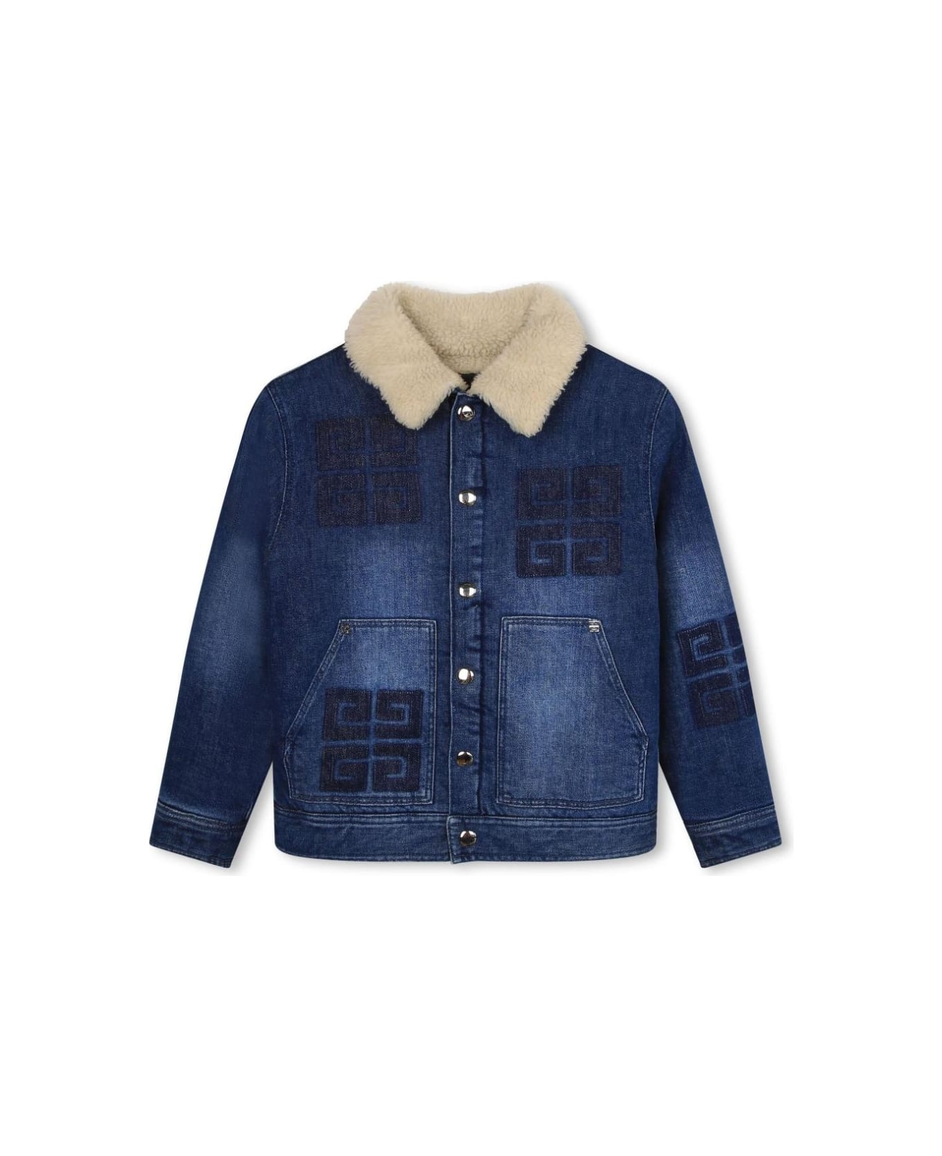 Giubbino denim con applicazione con logo e chiusura frontale con bottoni a pressione