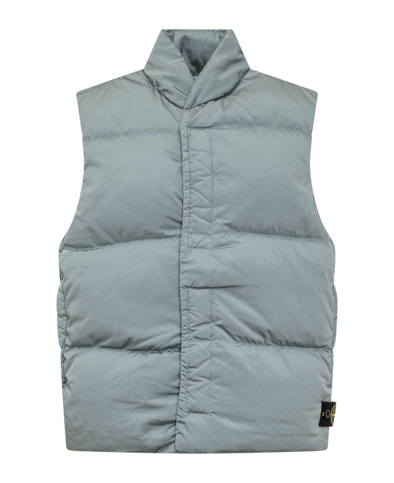 Light blue sleeveless down jacket. High collar. Front closure with buttons and velcro. Side pockets with zip. Logo on the side. Composition: Outside:, 100% Polyamide Lining:, 100% Polyamide Padding:, 80% Down, 20% Feather