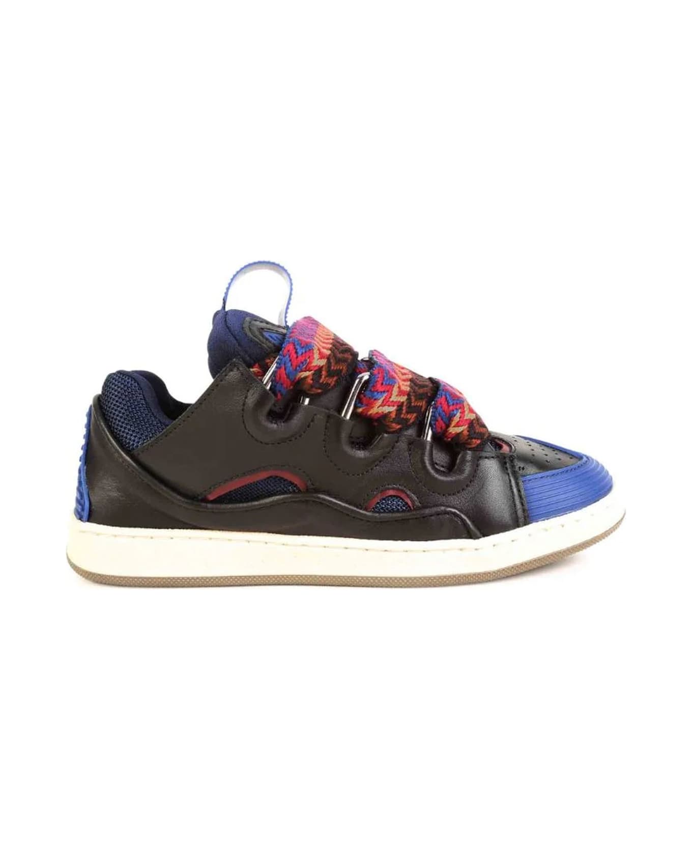 Black leather sneakers, panelled design, round toe, front lace-up fastening, flat rubber sole Composition: Cotton, 100%