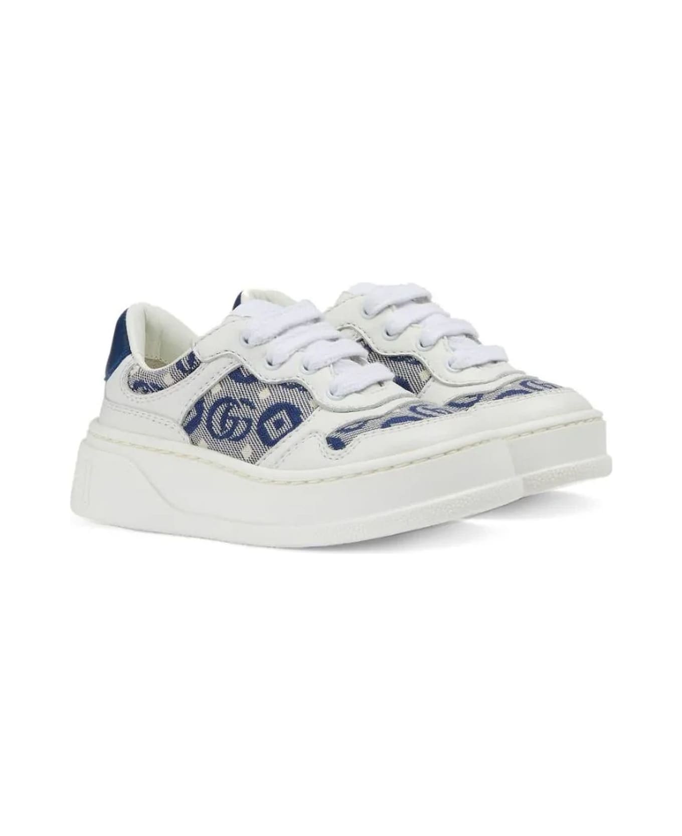 Double G white leather platform sneakers, signature Double G logo, tonal stitching, embossed logo to the rear, logo patch at the tongue, contrasting branded heel counter, round toe, front lace-up fastening, branded insole, platform sole