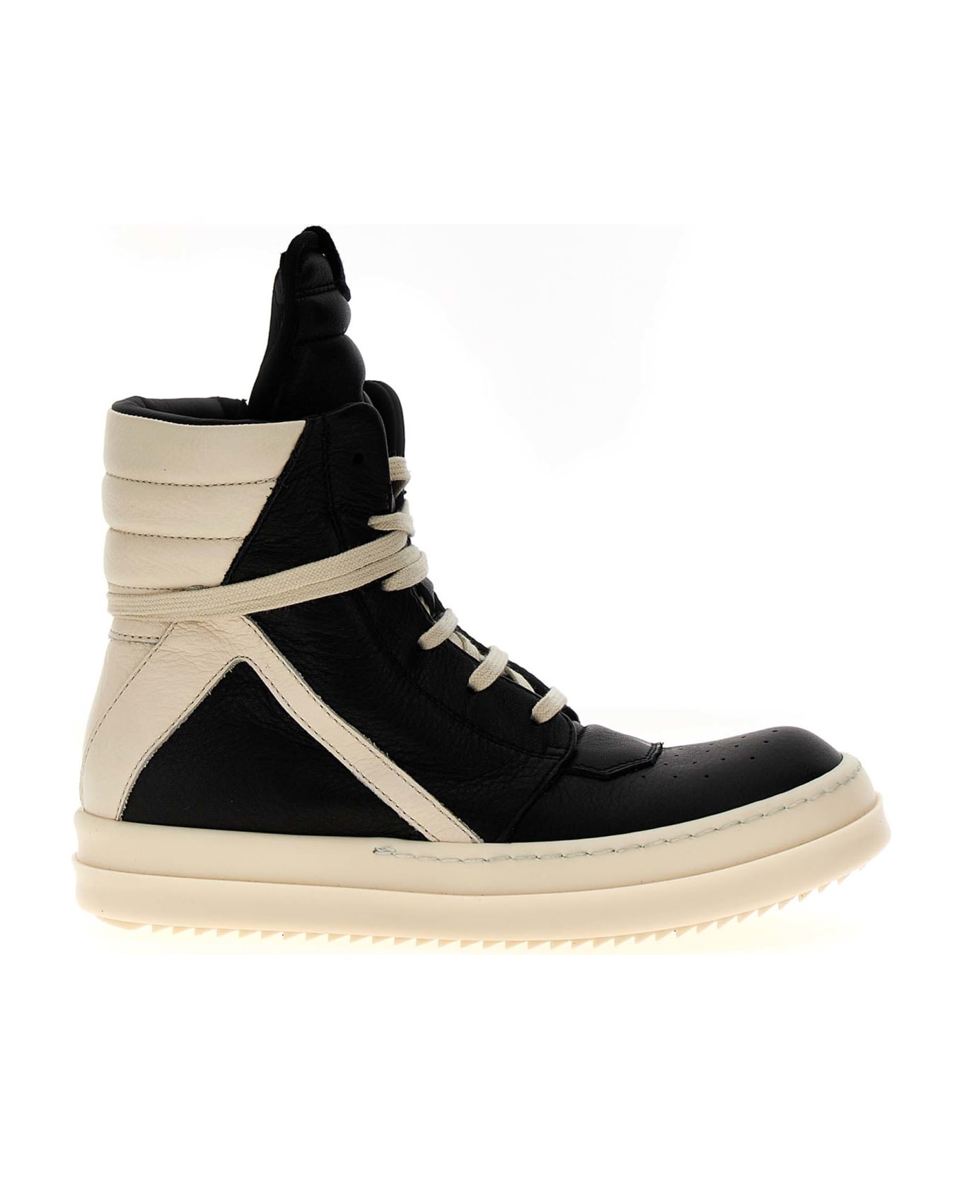 'Geobaskets' leather sneakers with contrasting details, laces, side zipper, and rubber sole.