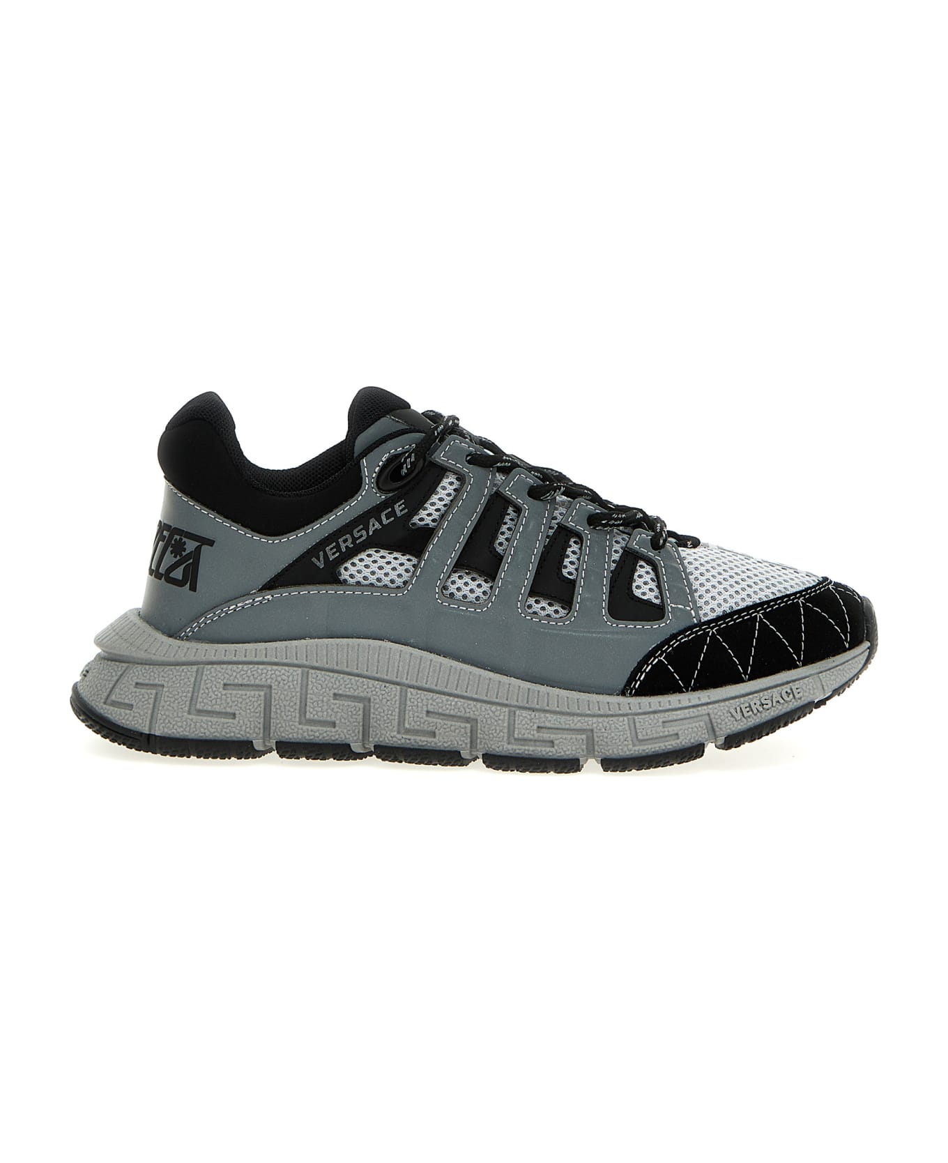 Trigreca' lace-up sneakers in a reflective tech fabric, featuring a mesh and suede fabric, a rubber sole. Composition: