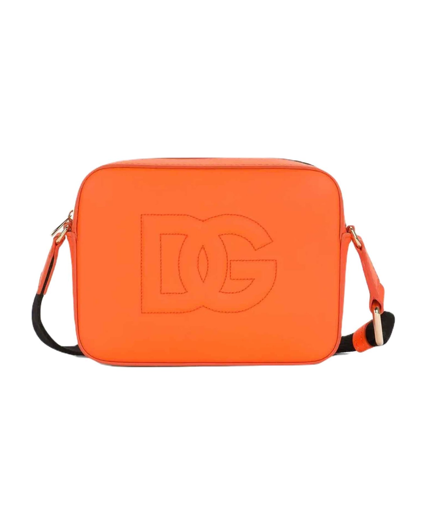 Orange bag girl. Front logo embroidery, all-round zip closure and adjustable shoulder strap. Calf Leather 100%