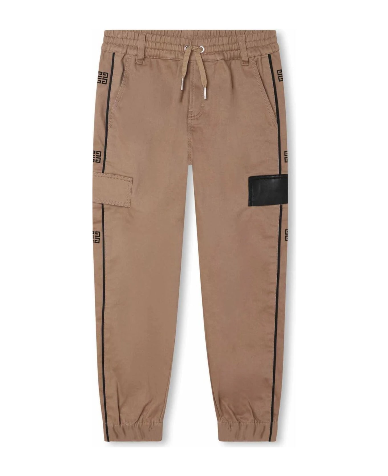 Beige cotton track pants, drawstring waist, logo patch to the side Composition: Cotton, 97% , Elastane, 3%