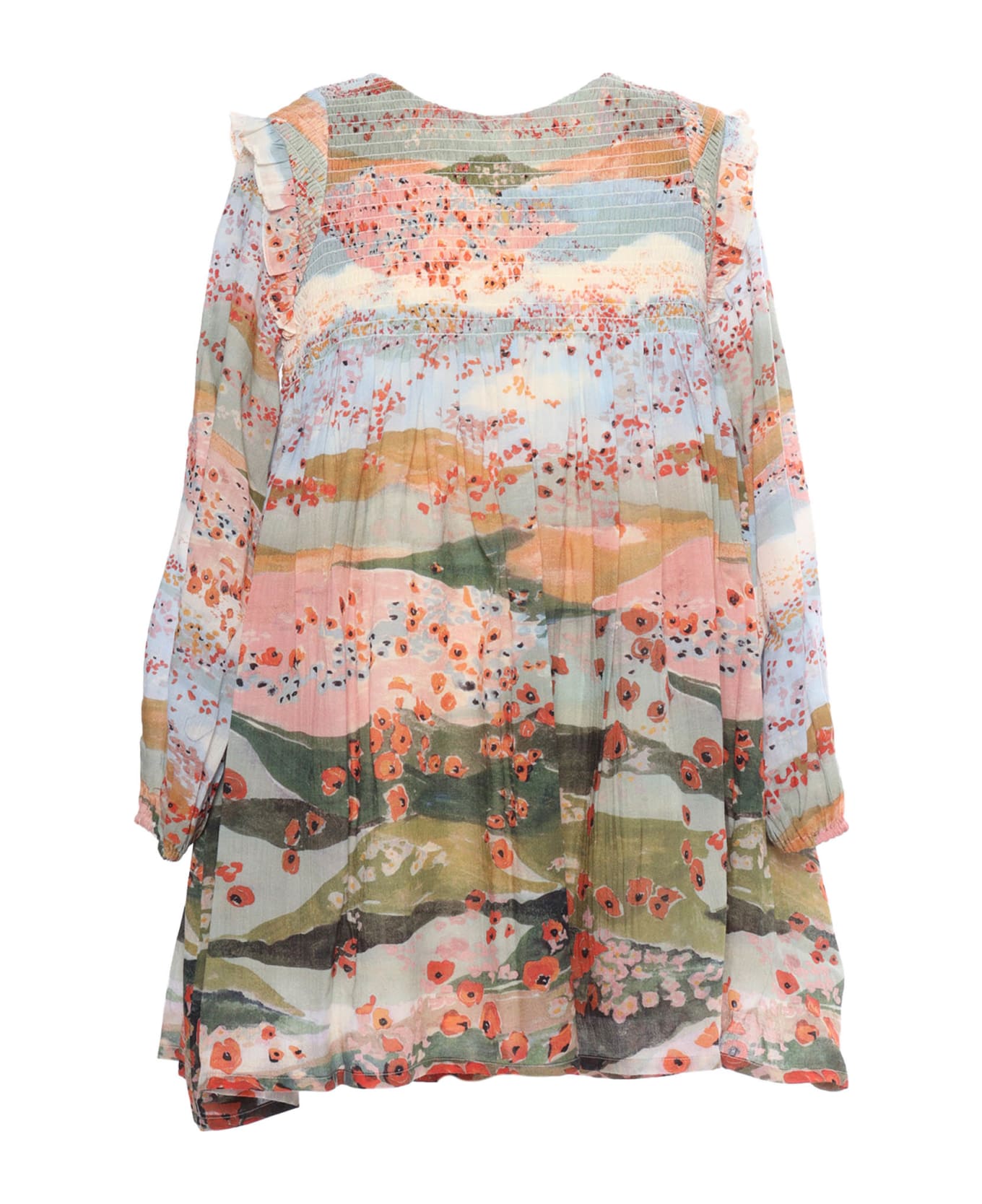 Cotton dress, round neckline, flounces on the armholes, front smock stitching, hidden zip fastening, elasticated cuffs Composition: 100% WOOL FABRIC 2 100% COTTON