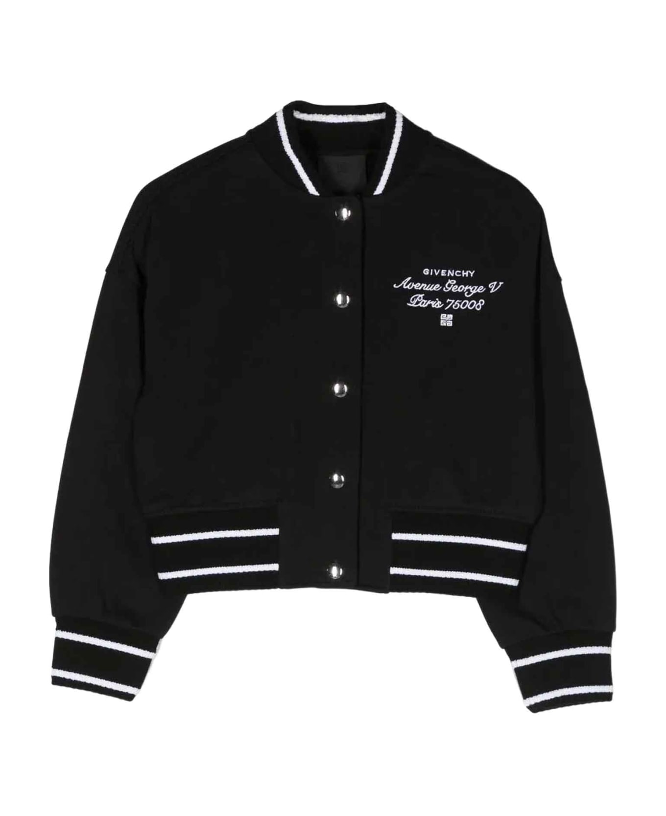 black jacket girl. Jersey construction, logo embroidered on the chest, signature 4G pattern, logo embroidered on the back, ribbed collar, front snap button closure, dropped shoulder sleeves, long sleeves, ribbed cuffs and ribbed hem. Cotton 86%, Polyester 14%