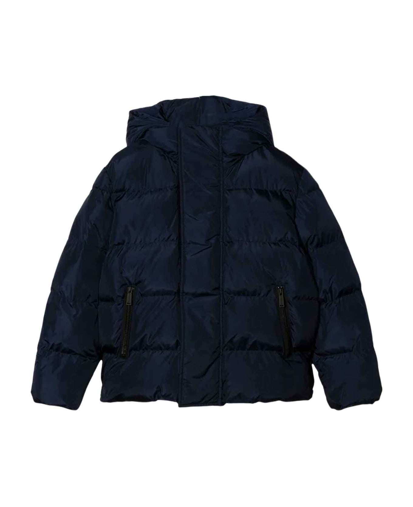 blue down jacket unisex. Logo print on the back, padded inserts, padded design, stand collar, long sleeves and a concealed front closure. Nylon 100%, Polyester 64%, Cotton 35%, Spandex/Elastane 1%