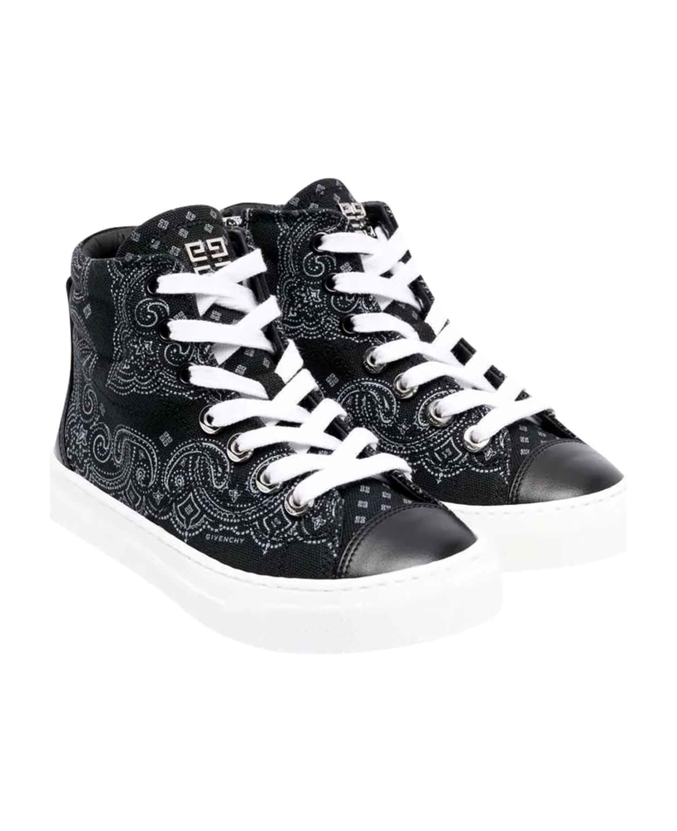 Black shoes girl. Bandana print, logo plaque on the tongue, round toe, front closure with laces and ankle height. 100% rubber sole