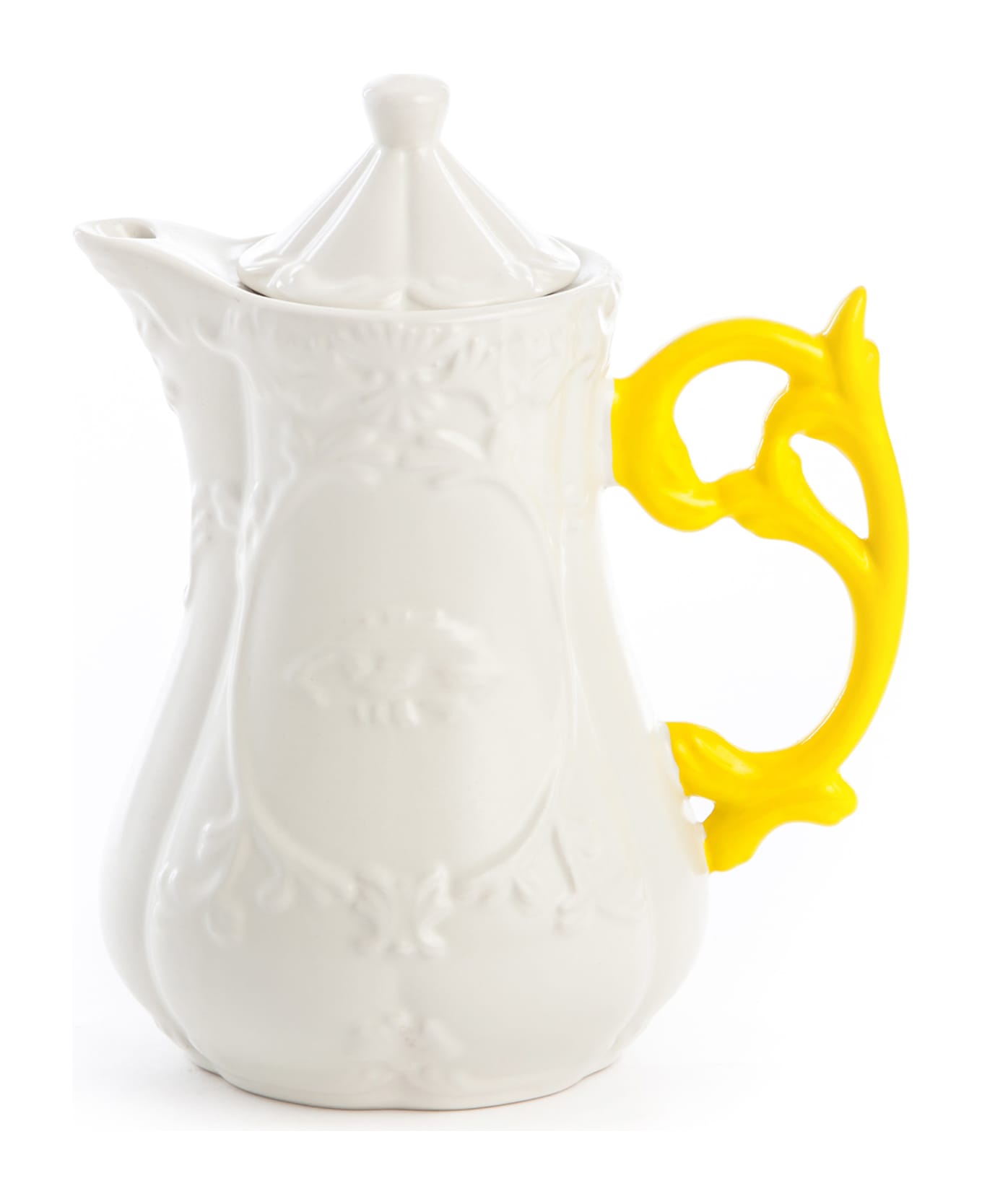 Seletti x Selab 'I-Wares' teapot Cups, teapots and sugar bowls with a Baroque inspiration. Fine porcelain with a white finish and fluorescent handles or in gold color. Brilliant and elegant with a sophisticated aura.
