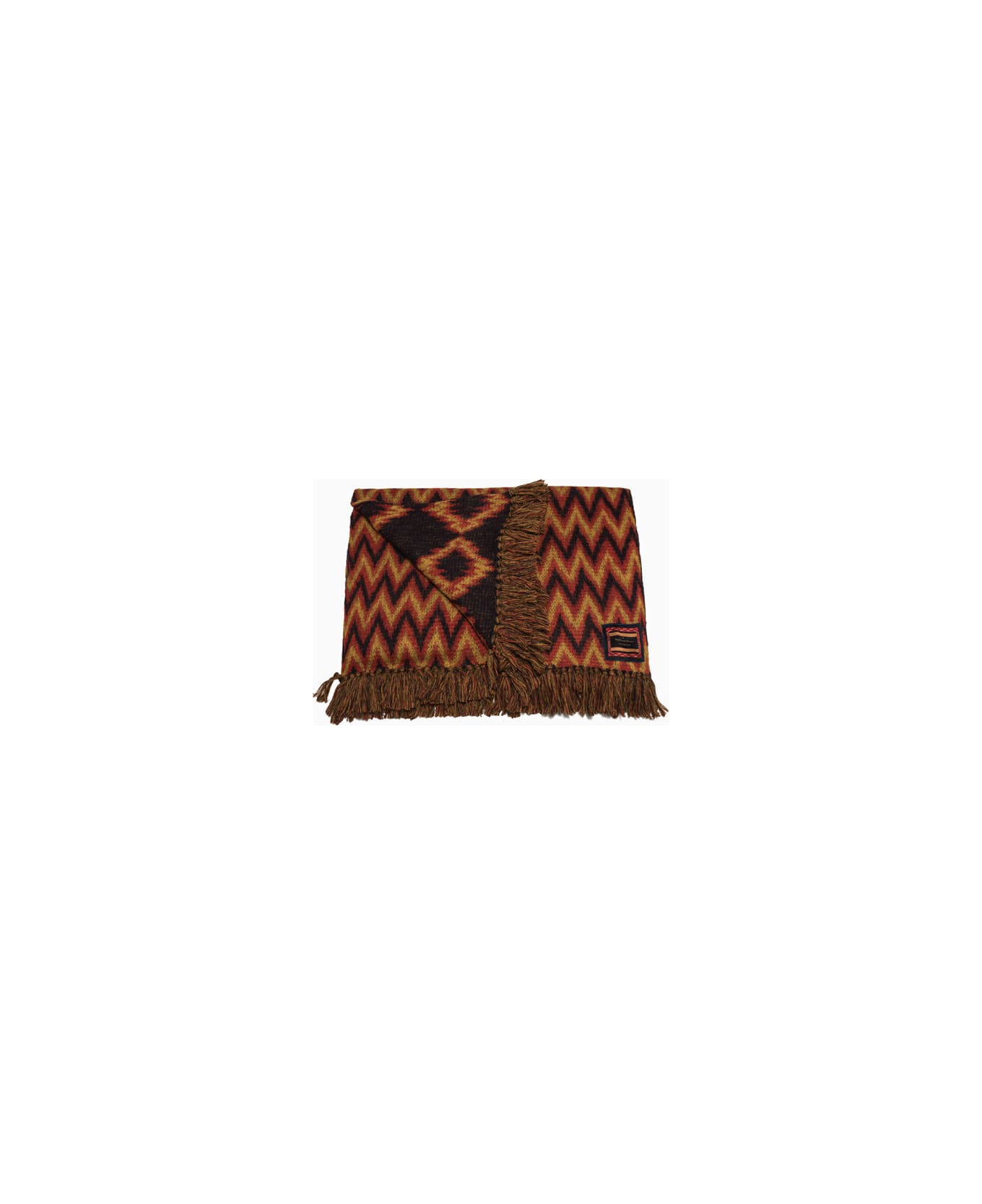 made in italy woolen blanket with all-over optical pattern. frayed edges. logo patch at hem. size: 140x196 cm. composition: 26% alpaca 26% mohair 26% wool 22% polyamide