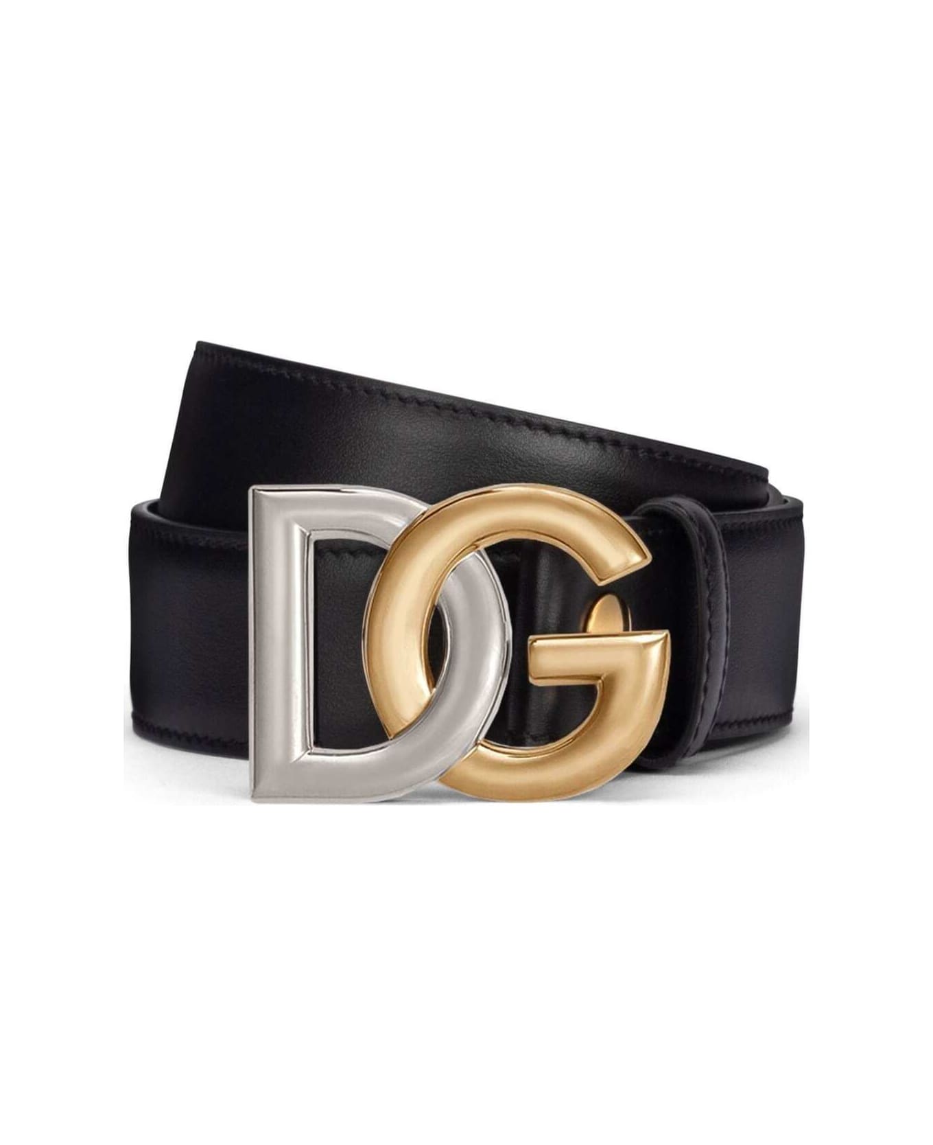 Gold and silver interlocking logo buckle