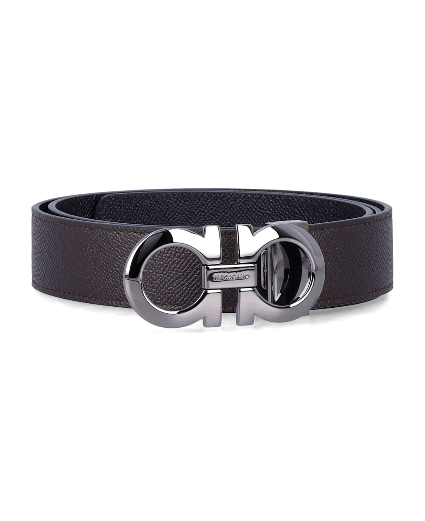 Ferragamo Hammered Leather Reversible Gancini Belt