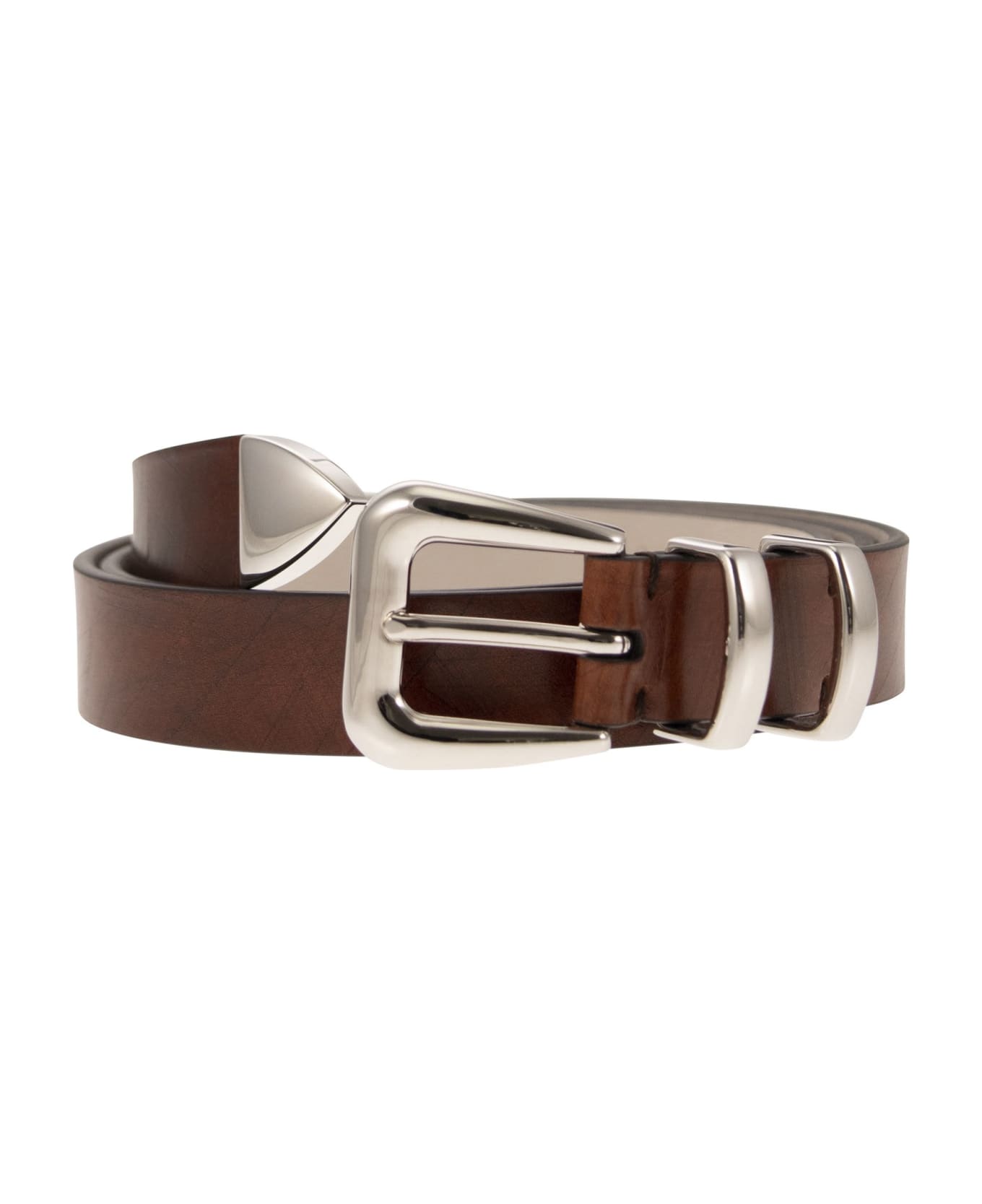 A precious accessory to complete outfits with a touch of style, the belt employs fine leather with a smooth and natural effect. The chrome effect of the metal used for the buckle, the double loop and the toecap complete the style of the accessory. - Genuine leather DESIGNER ID: MAUBA253 C8828 Composition: 100% Leather