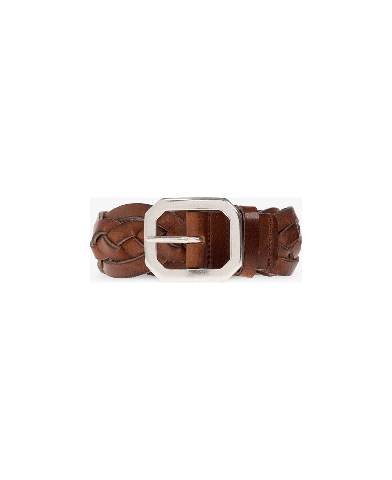 Brown belt with a silver-tone buckle and logo from Dsquared2. Made of woven leather.