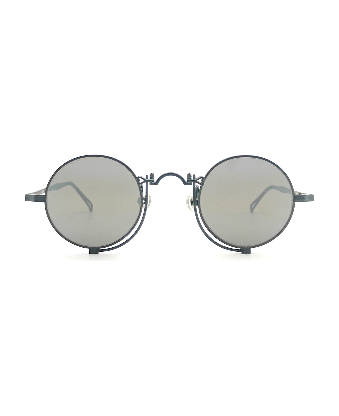 Matsuda 10601H - MATTE BLACK / SILVER MIRROR (10601H. SG. MBK2. 45) are round sunglasses made in Japan, part of the Heritage Collection (original release date: 1997) and they are inspired by the 'pince-nez' popular in the late 1800s. They feature a lightweight Japanese engraved titanium frame with elegant rim wire with signature Matsuda engraving, distinctive nose bridge, titanium temples, and silver mirror lens with 100% UV protection.