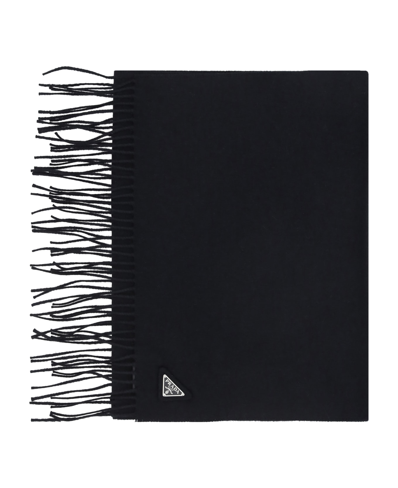 Cashmere scarf by prada, frayed hems, monochrome pattern, iconic triangular enamel plaque with iconic brand signature applied to the front. Composition: 100% % Kashmir *sost Con Ws*