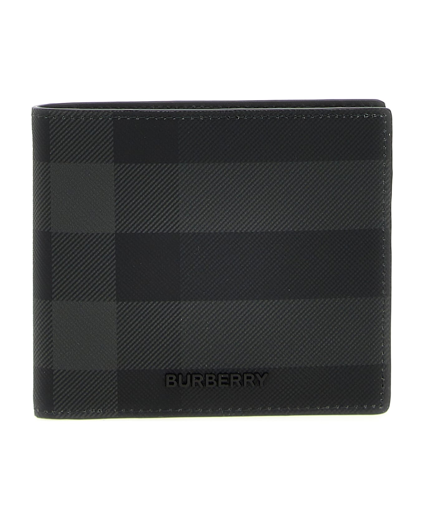 Check pattern leather wallet, tone-on-tone front logo. Composition: