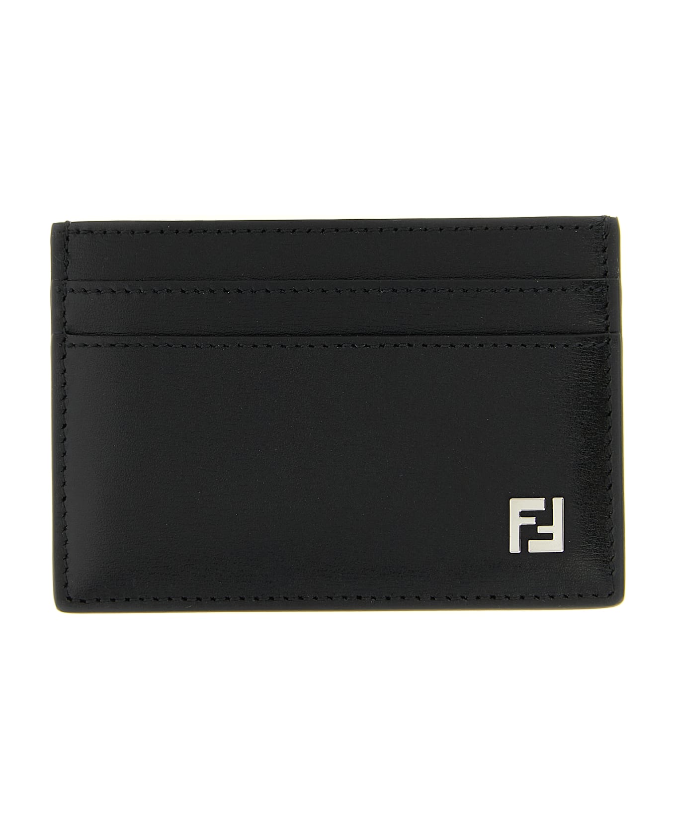 Calf leather card holder with semi-gloss finish, metal 'Squared FF' logo on the front.