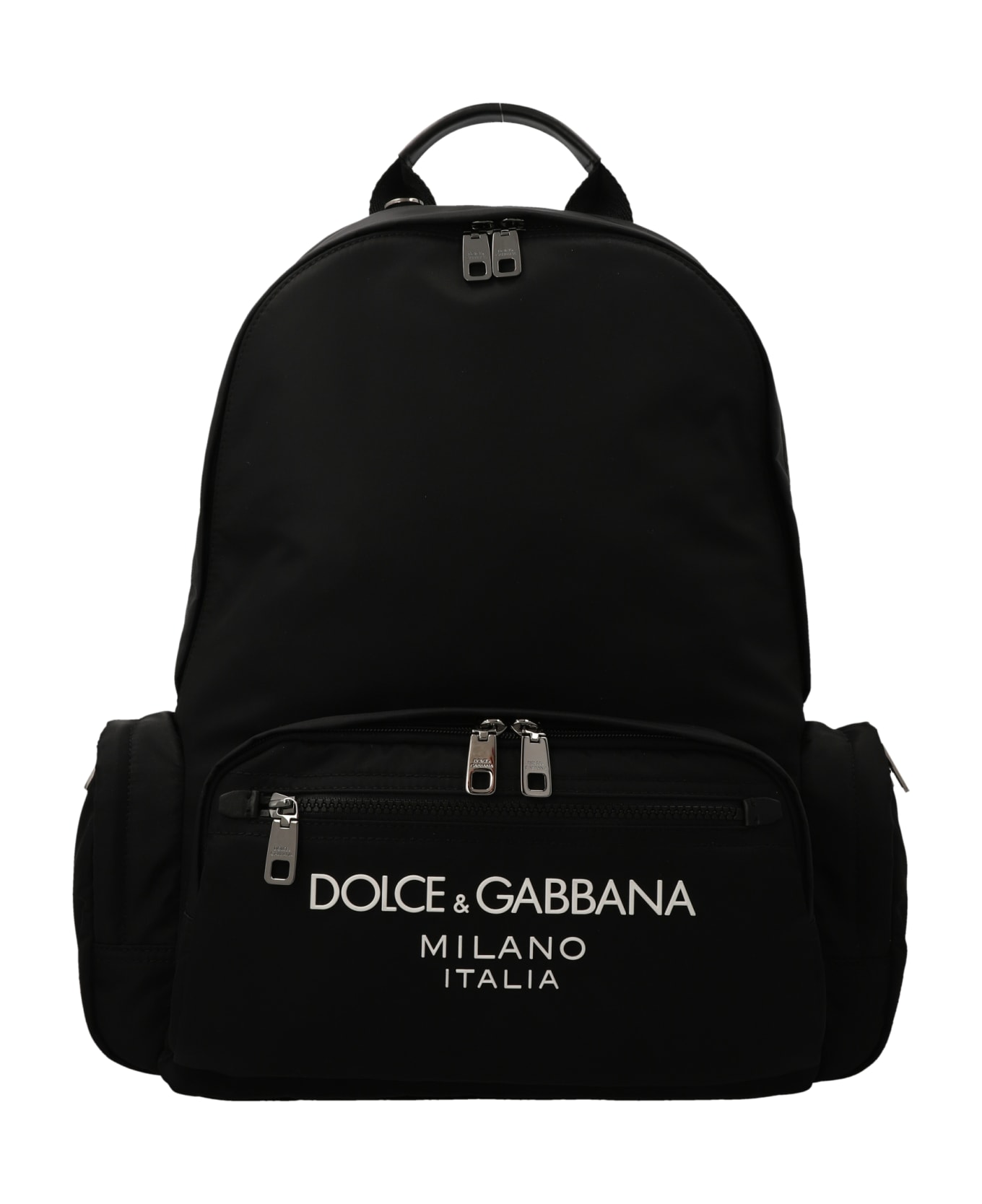 Nylon backpack with front logo, zip closure, external pockets and adjustable shoulder straps.