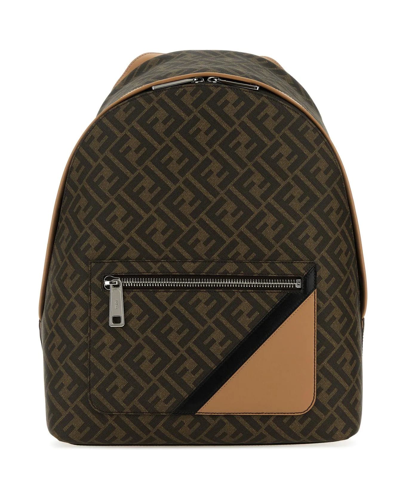 Backpack realized in canvas and leather characterized by FF motif print on the entire surface enriched by metal Chiodo detail at the top. - Adjustable shoulder straps - A zip pocket at the front - Lined interior with a zip pocket Composition: Exterior: 100% Fabric 100% Leather Lining: 100% Fabric Finishing: Silver metal