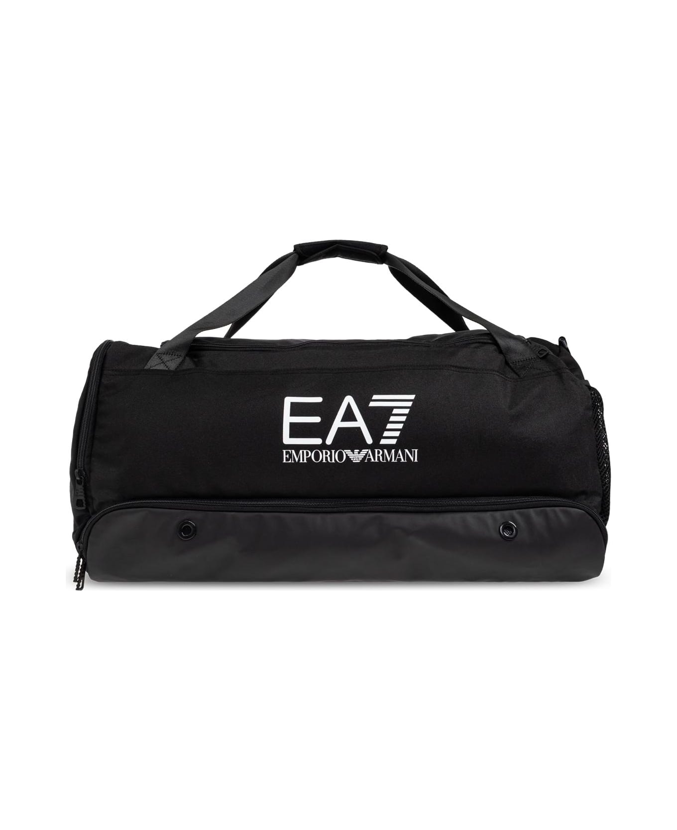 Crafted for discerning individuals who demand both function and refinement, the EA7 Emporio Armani Sports Bag epitomizes modern athletic elegance. Its classic cylindrical holdall shape with an expansive main compartment and rounded ends offers versatile capacity, seamlessly blending style and practicality for travel or daily pursuits. The sophisticated all-black silhouette is punctuated by a bold, white EA7 EMPORIO ARMANI logo, accentuated by the iconic '7' line and Armani eagle emblem for unmistakable designer presence. Constructed from a premium technical fabric, the exterior ensures outstanding durability and resistance to abrasion and rain, while the reinforced, waterproof base delivers added protection where it's needed most. Why choose this product? Distinguished by the instantly recognizable EA7 Emporio Armani branding Expertly crafted from high-grade materials for durability and style Generous capacity and versatile design for both sports and travel Sleek, minimalist aesthetics for a timeless, sophisticated look Water-resistant and abrasion-proof construction for daily confidence