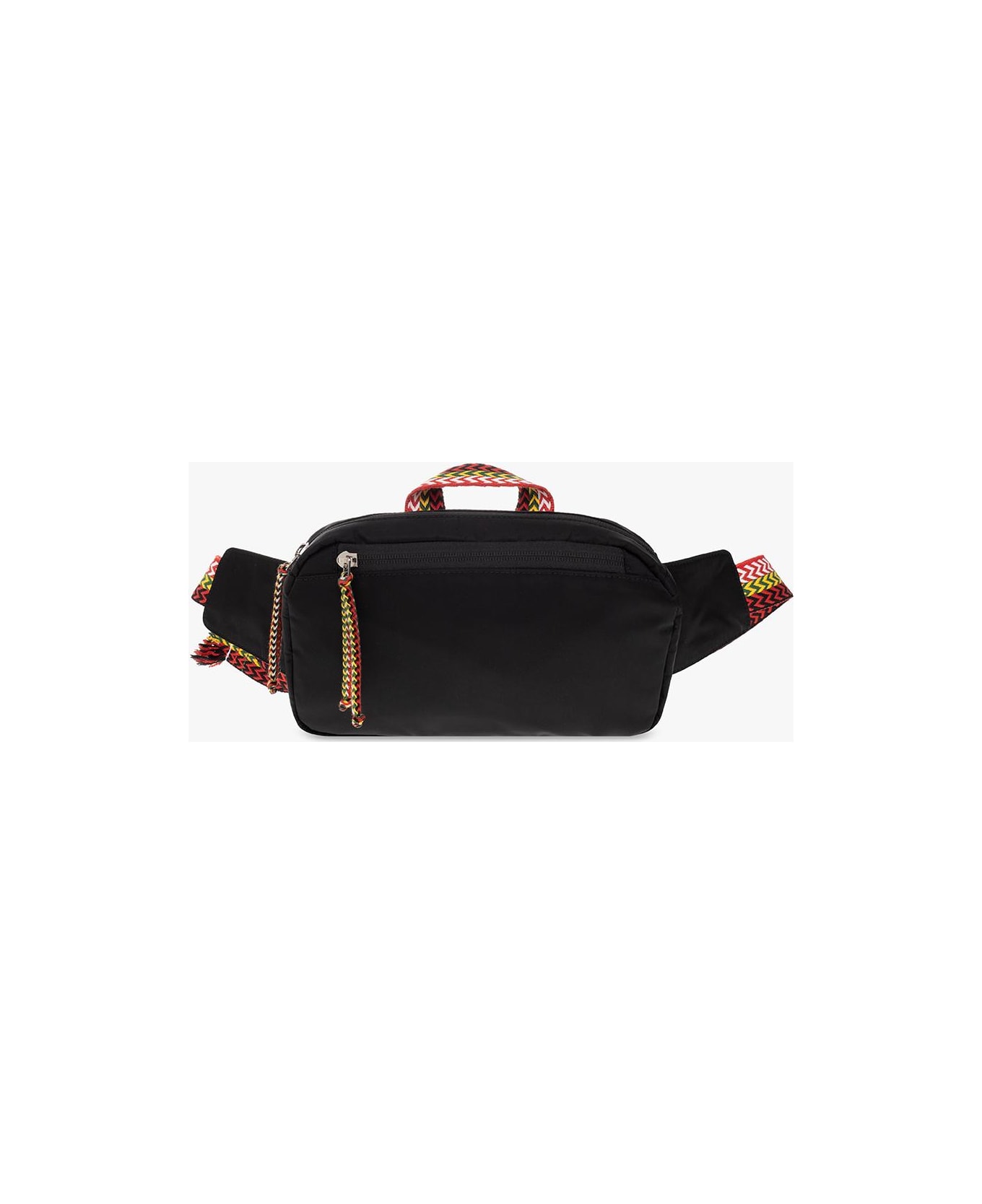 Black belt bag from Lanvin. Crafted from technical fabric, this design features a zipped main compartment and frontal pocket, a logo patch on the side, a colourful handle and adjustable strap with a buckle and geometrical pattern, silver-tone metal hardwa Composition: Nylon Polyester Metal