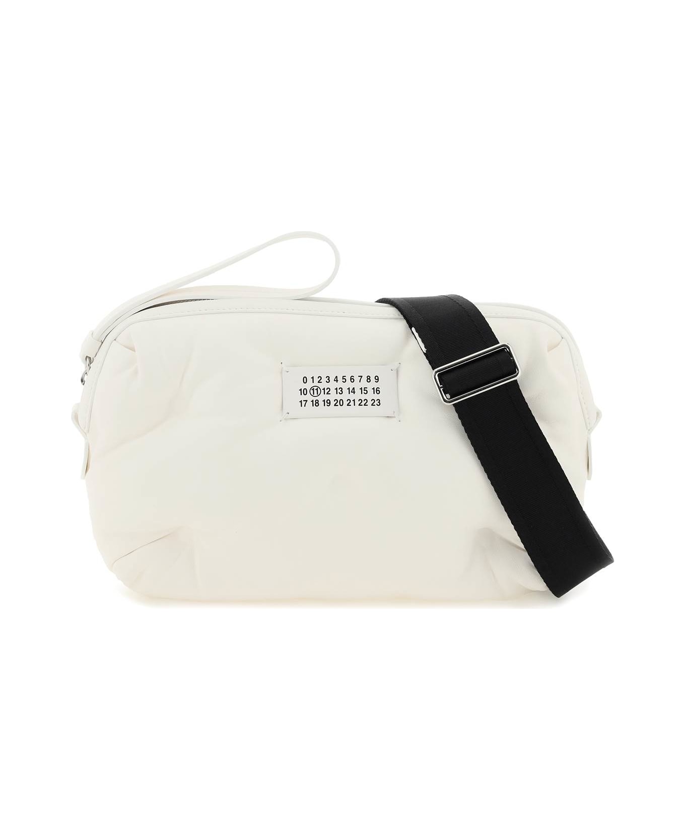 Glam Slam crossbody bag from Maison Margiela crafted in quilted nappa leather with the iconic leather Logo tag applied to the front. Zip closure with leather puller serving as a wrist handle, nylon fabric-lined interior with one zippered pocket, and adjustable, detachable fabric shoulder strap. Silver-finished metalware.